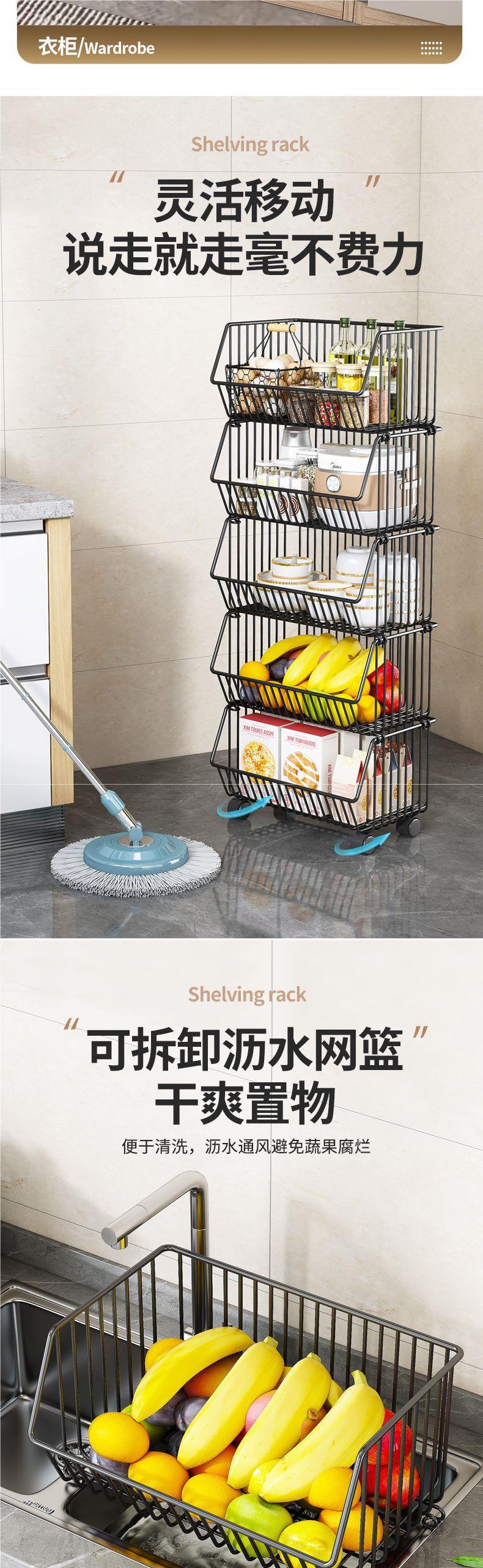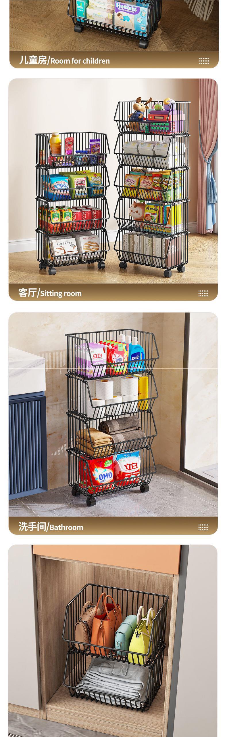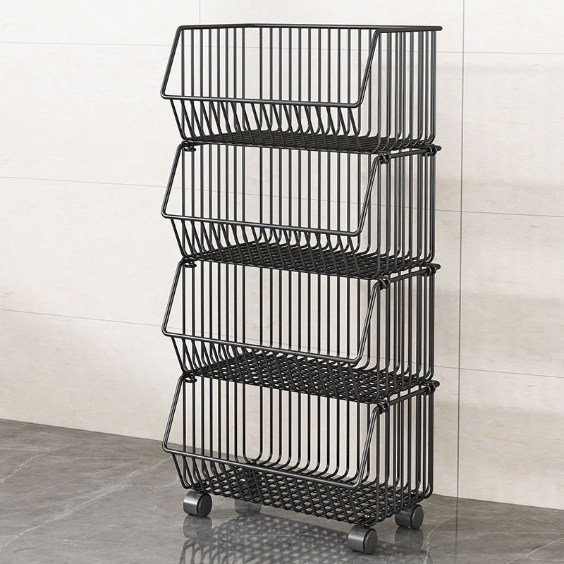 주방 보관 랙 블랙 침실 발코니 옷장 보관 계층화 된 이발소 트롤리 모바일 과일 및 야채 바구니
