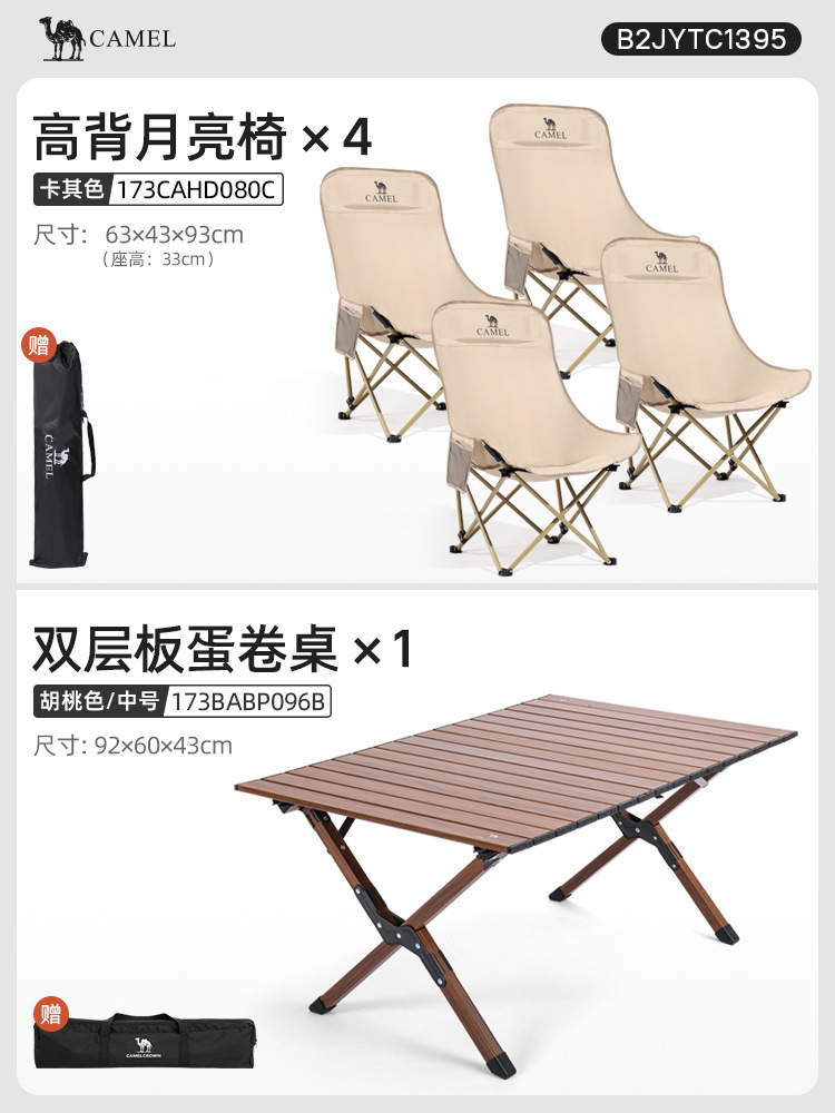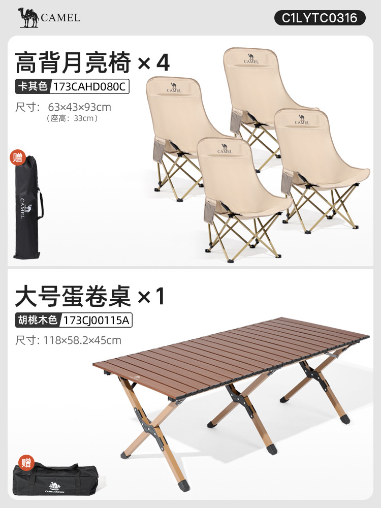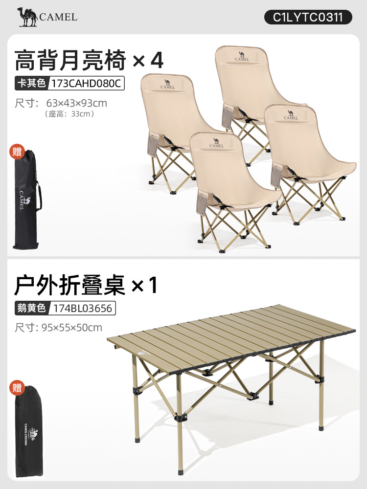• 【테이블 1개와 의자 4개|캠핑】카키 문 체어*4+92 알루미늄 합금 에그롤 테이블