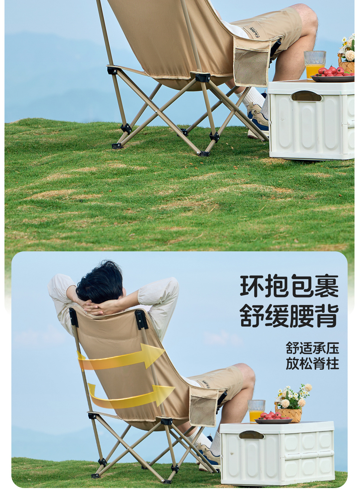 • 【카키색|문체어] 업그레이드 모델 - 다단계 조절 - 앉거나 누울 수 있음 - 분리형 스탠드