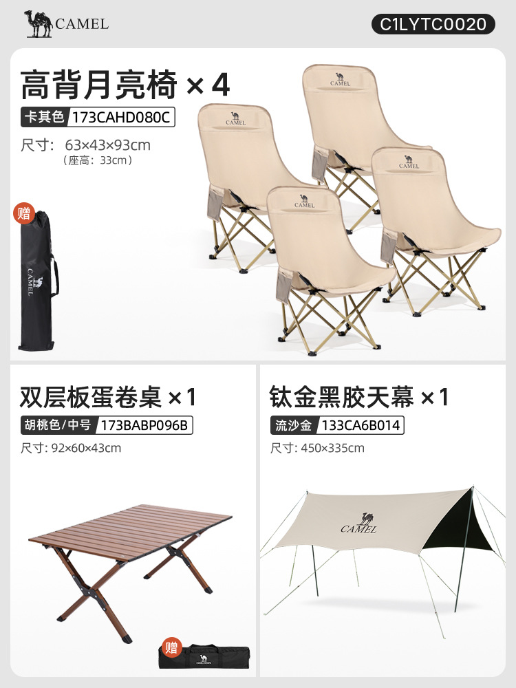 • [캐노피 캠핑 패키지] 카키 문 체어*4+92 알루미늄 합금 에그롤 테이블+15㎡티타늄 캐노피