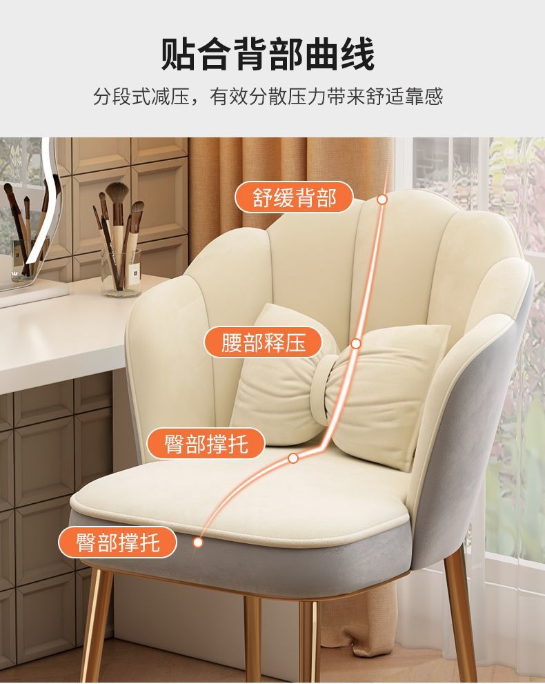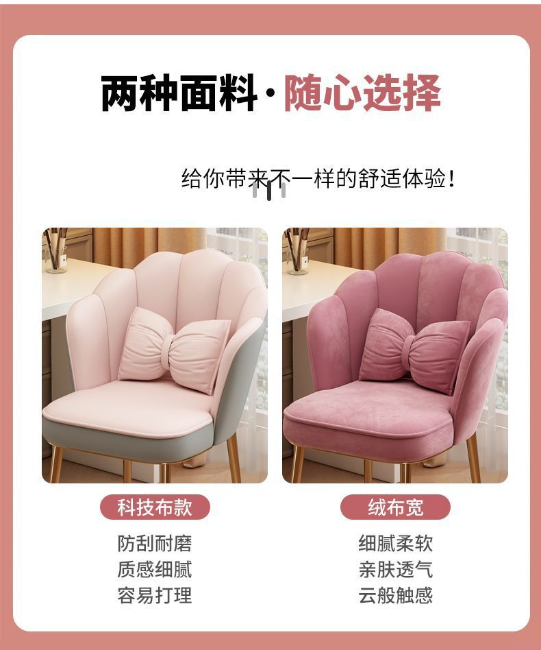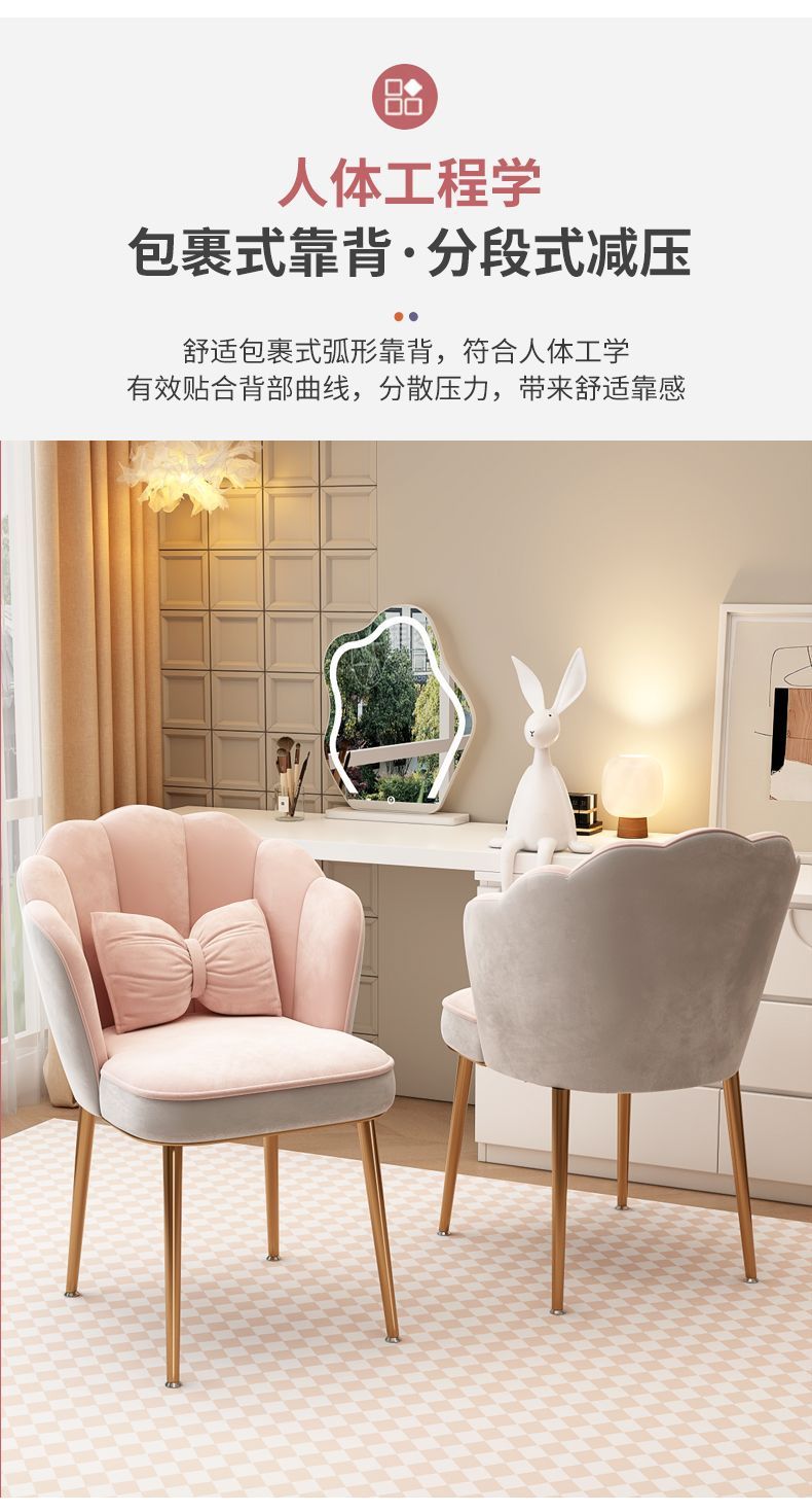 메이크업 의자 간단한 인터넷 유행 의자 등받이 소녀의 침실 드레싱 테이블 네일 의자 가벼운 고급 의자 가정용 꽃 꽃잎 의자