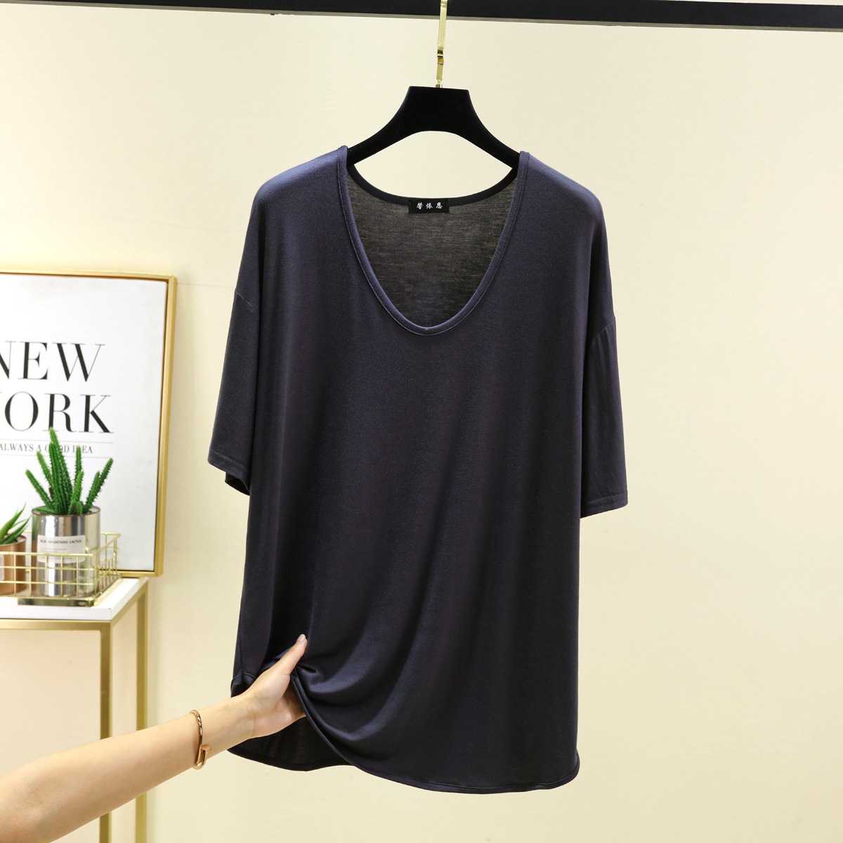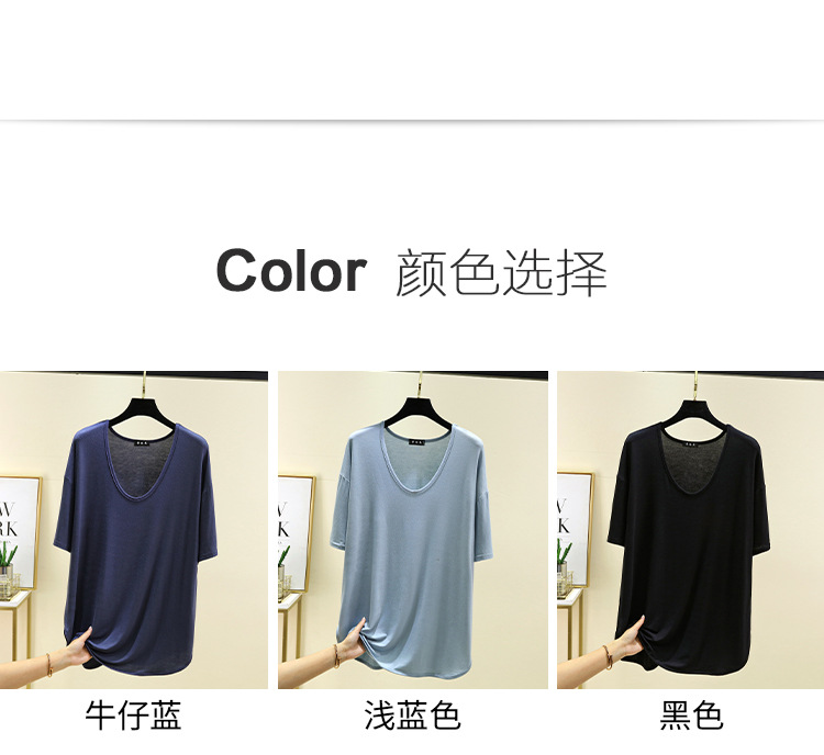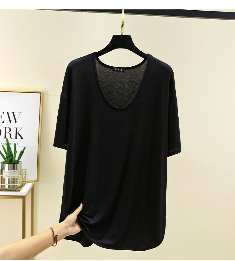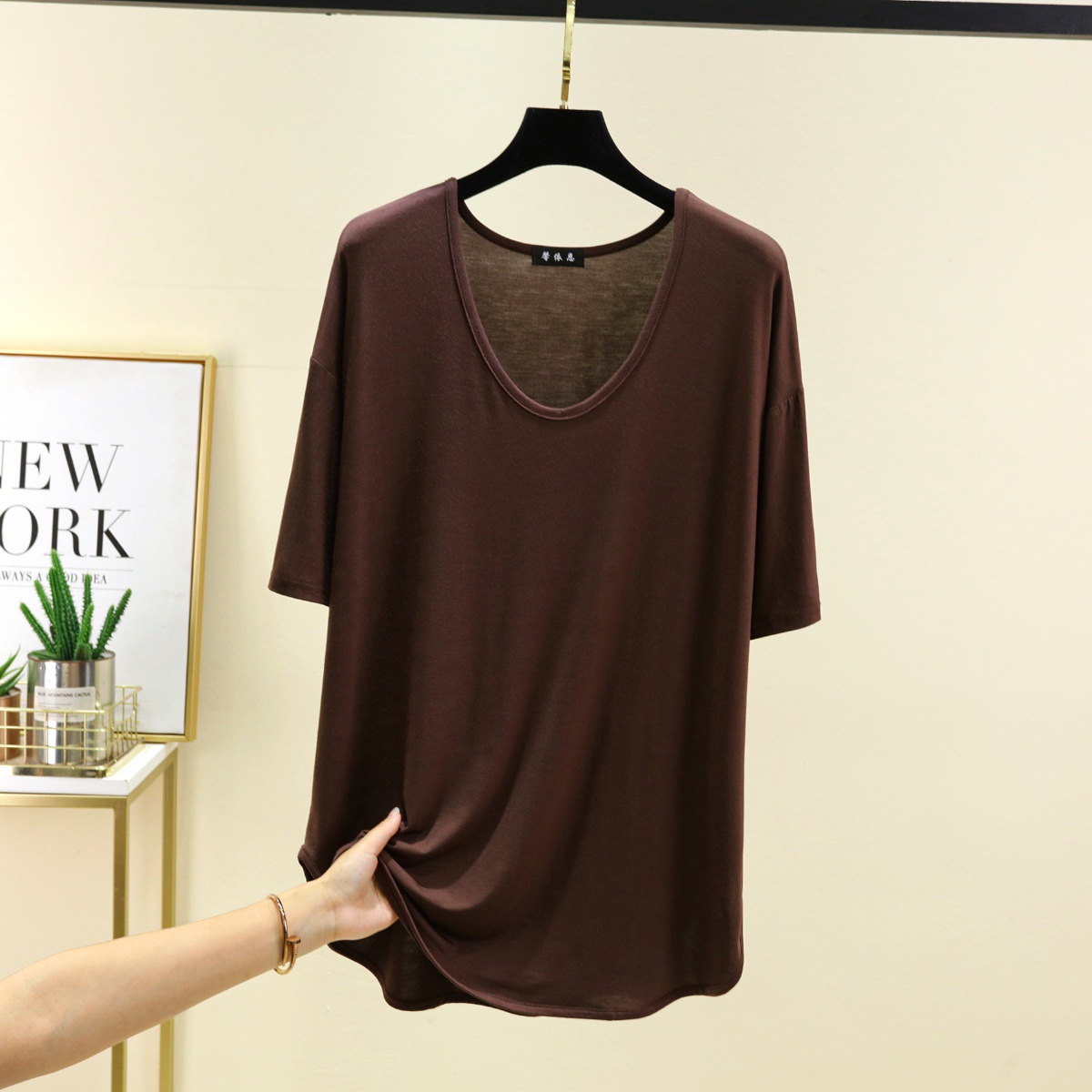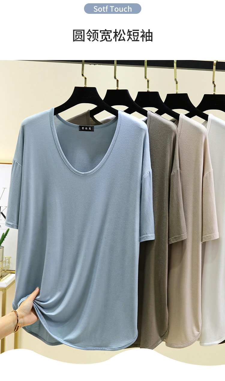 모달 크루 넥 루즈 티셔츠 여성용 여름 얇은 반소매 탑 캐주얼 플러스 사이즈 간단한 반팔베이스 셔츠스토어 가기