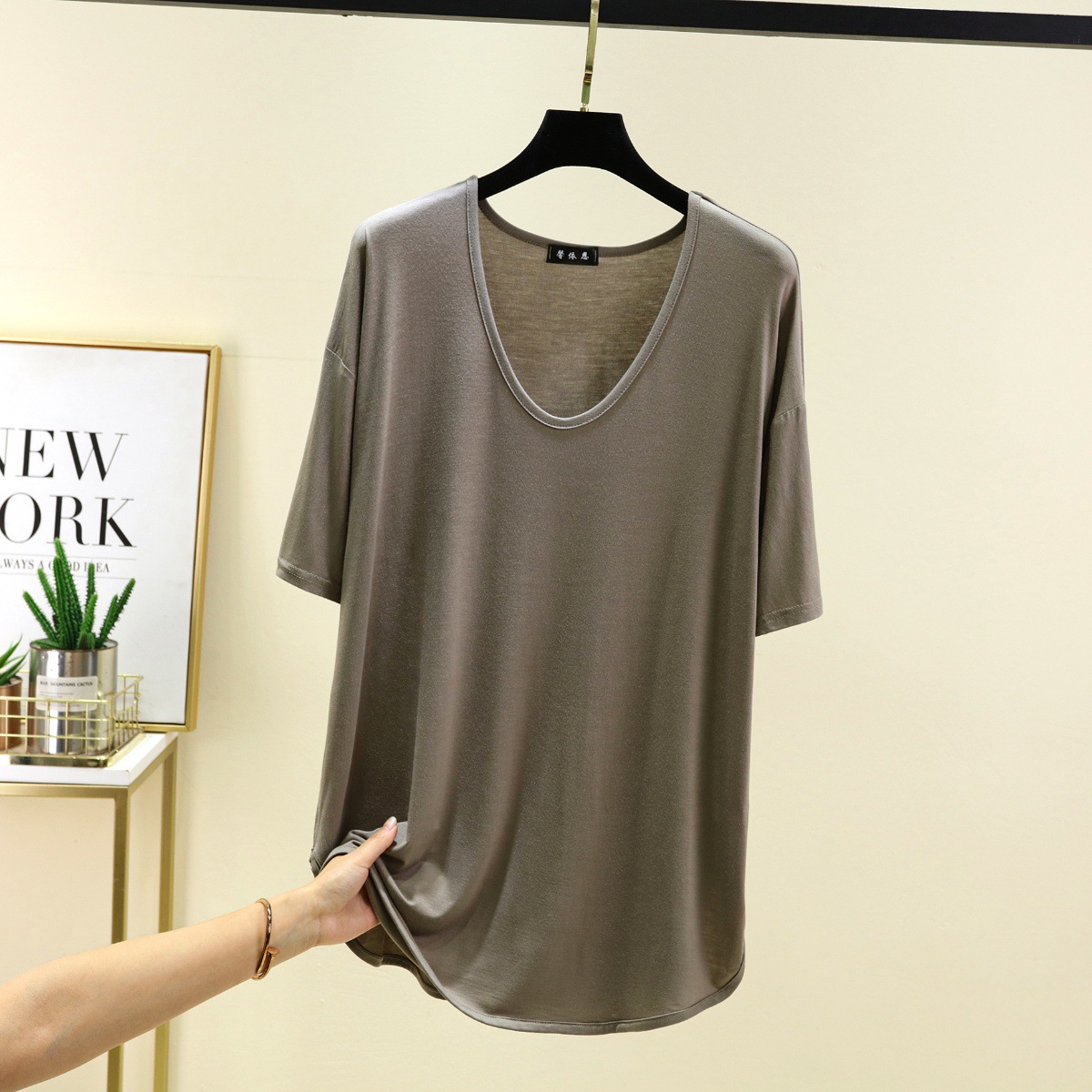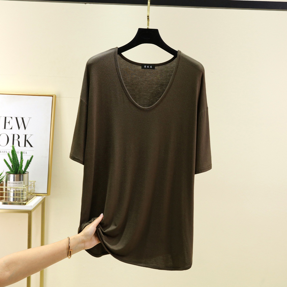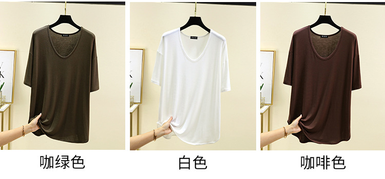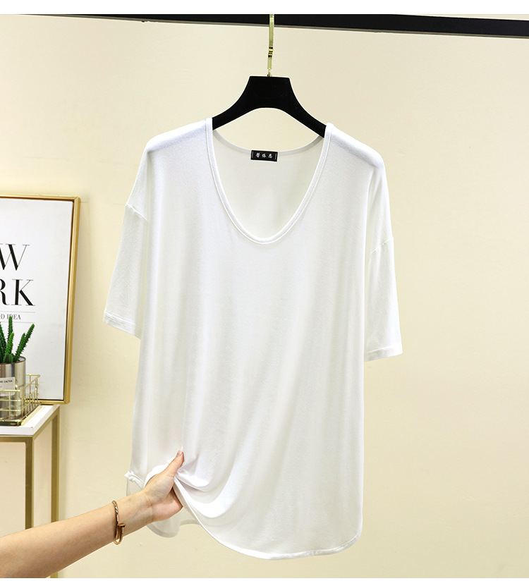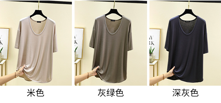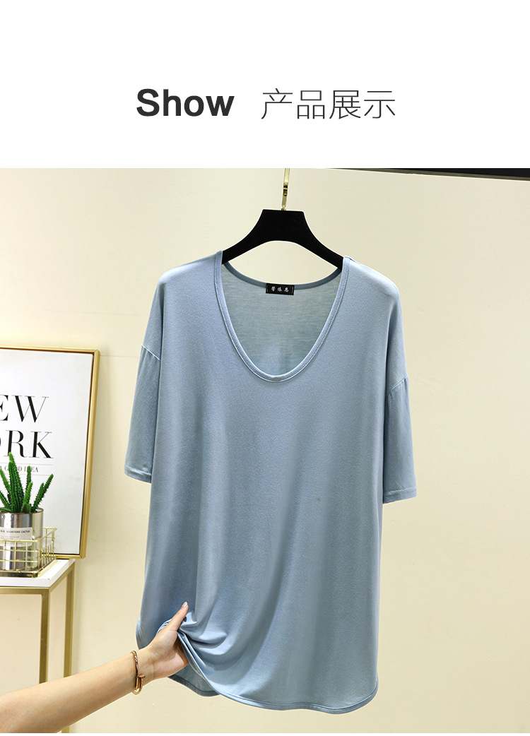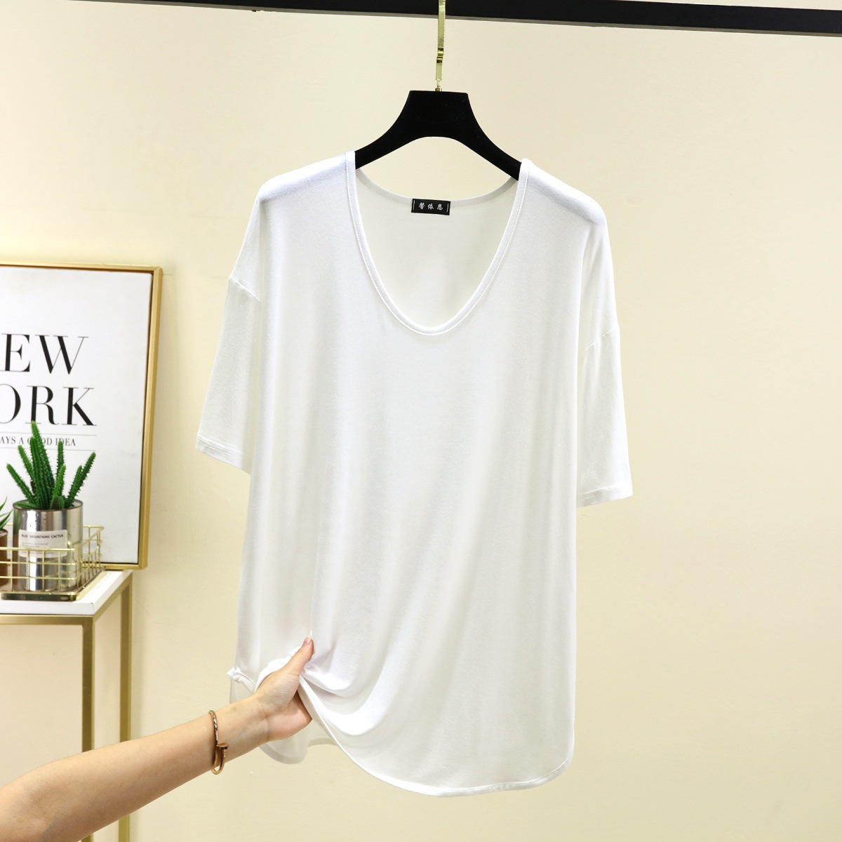 모달 크루 넥 루즈 티셔츠 여성용 여름 얇은 반소매 탑 캐주얼 플러스 사이즈 간단한 반팔베이스 셔츠스토어 가기