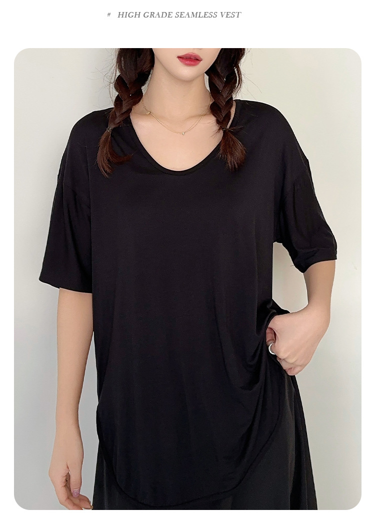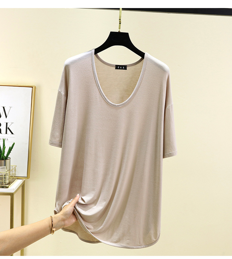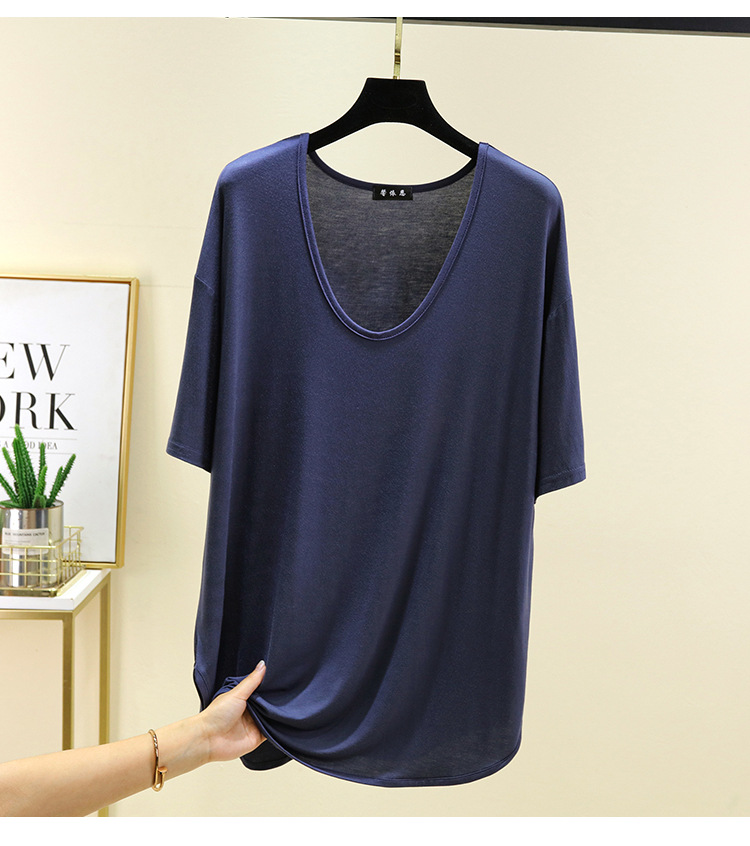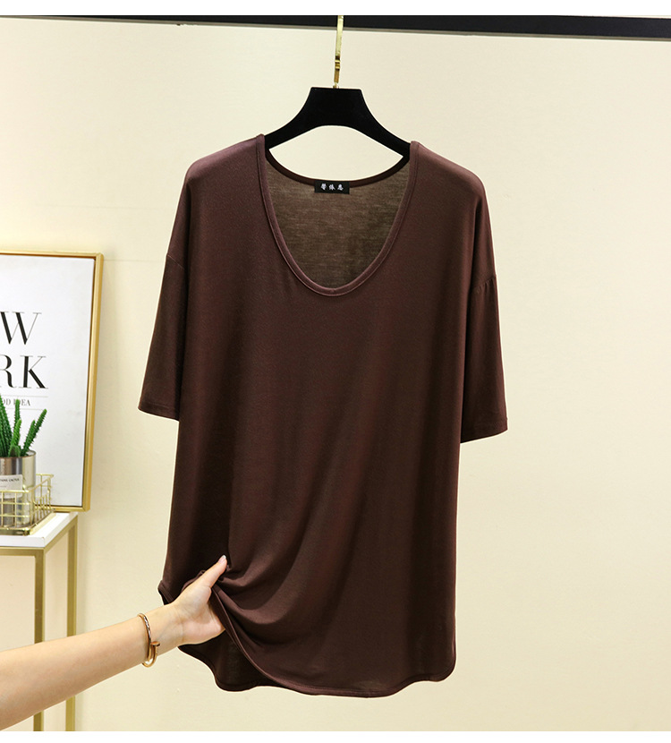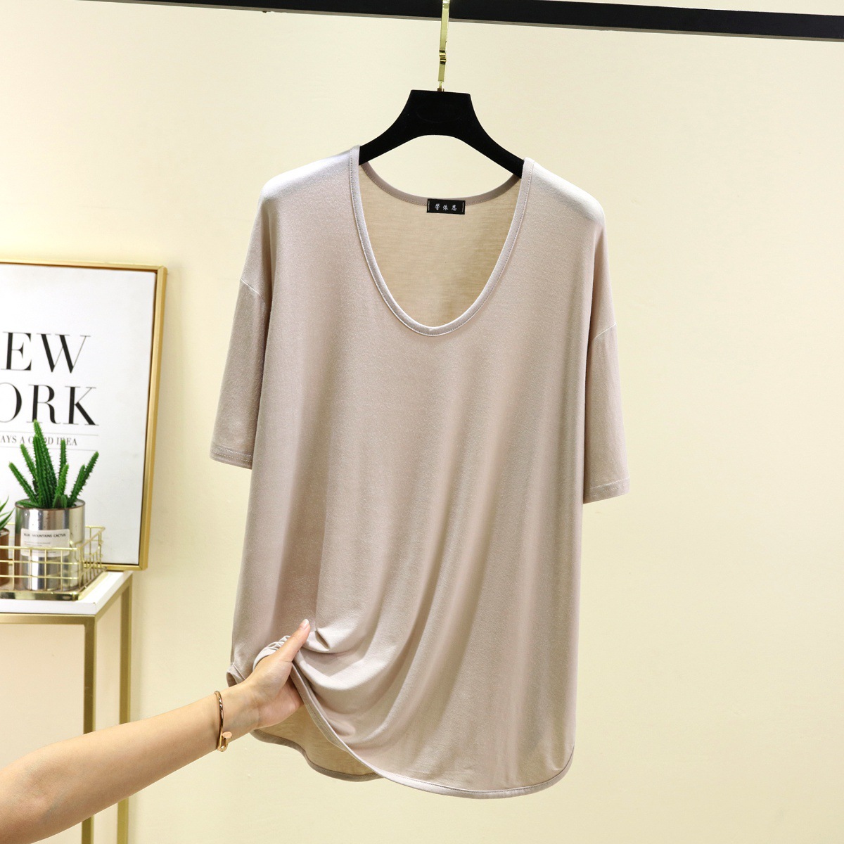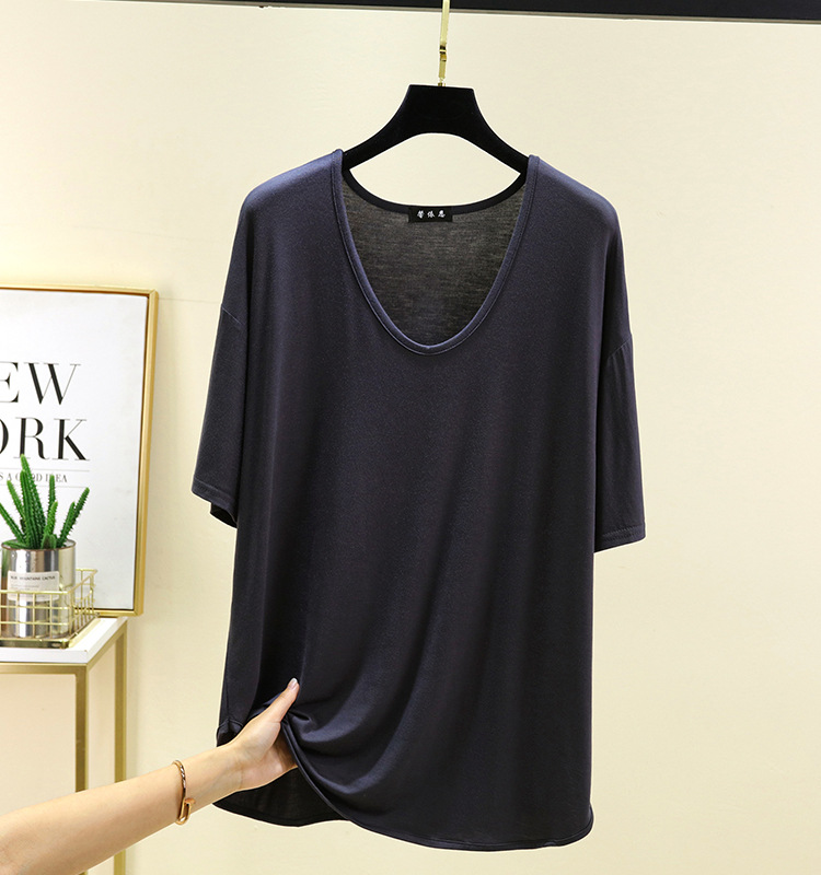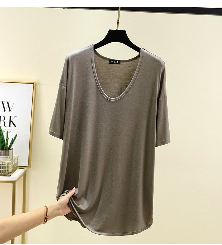 모달 크루 넥 루즈 티셔츠 여성용 여름 얇은 반소매 탑 캐주얼 플러스 사이즈 간단한 반팔베이스 셔츠스토어 가기