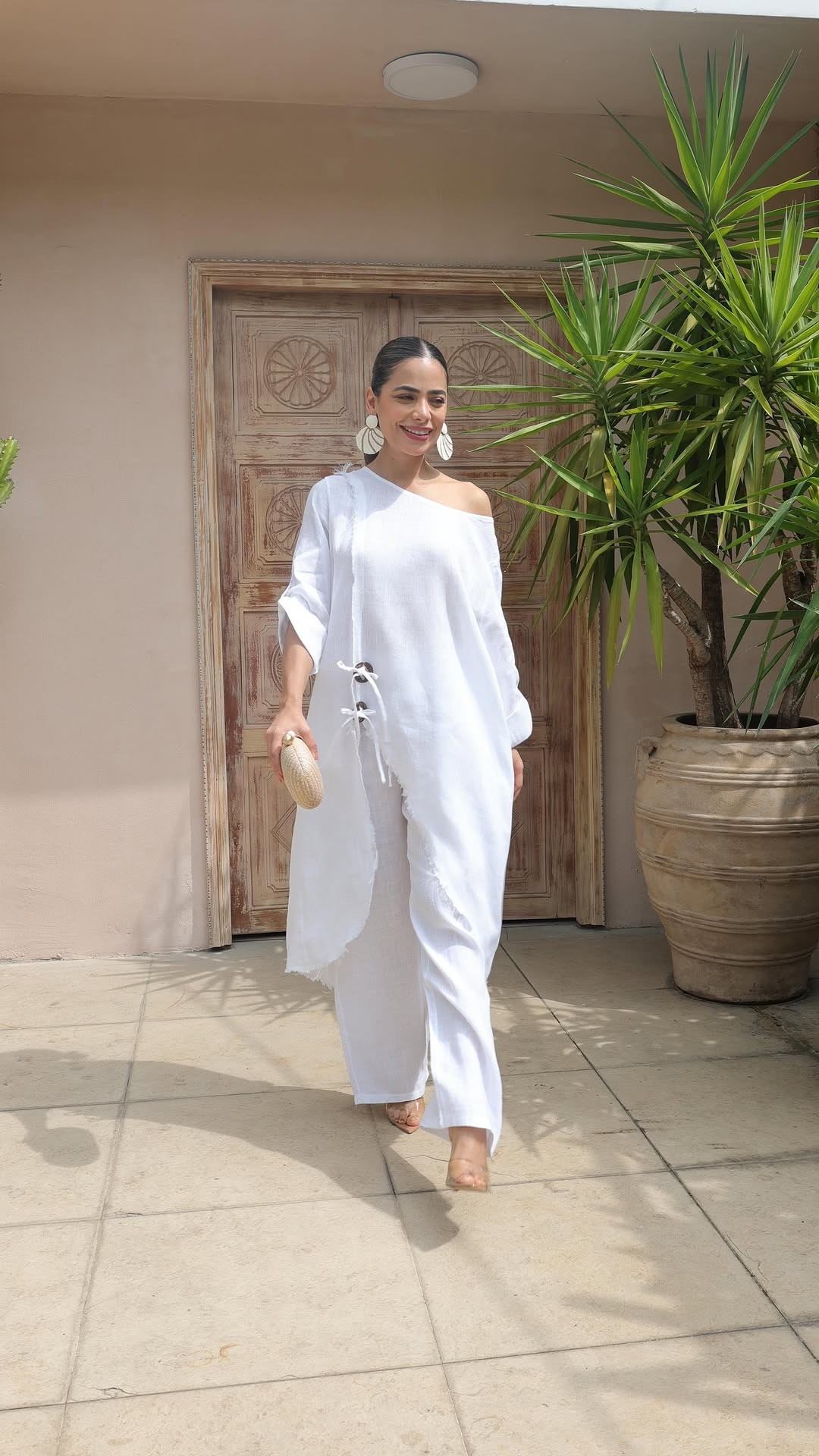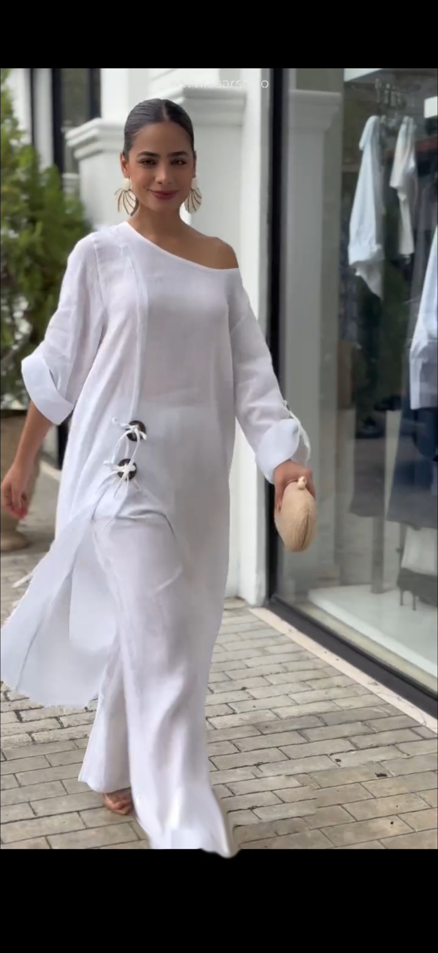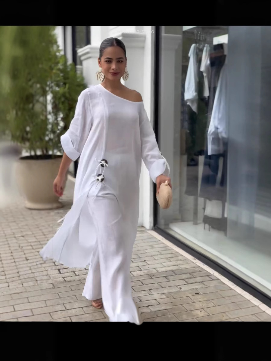 2025 국경 독립 역 봄과 여름 나무 버클 느슨한 불규칙한 가운 세트 바지 유럽과 미국 패션 여성 의류.스토어 가기