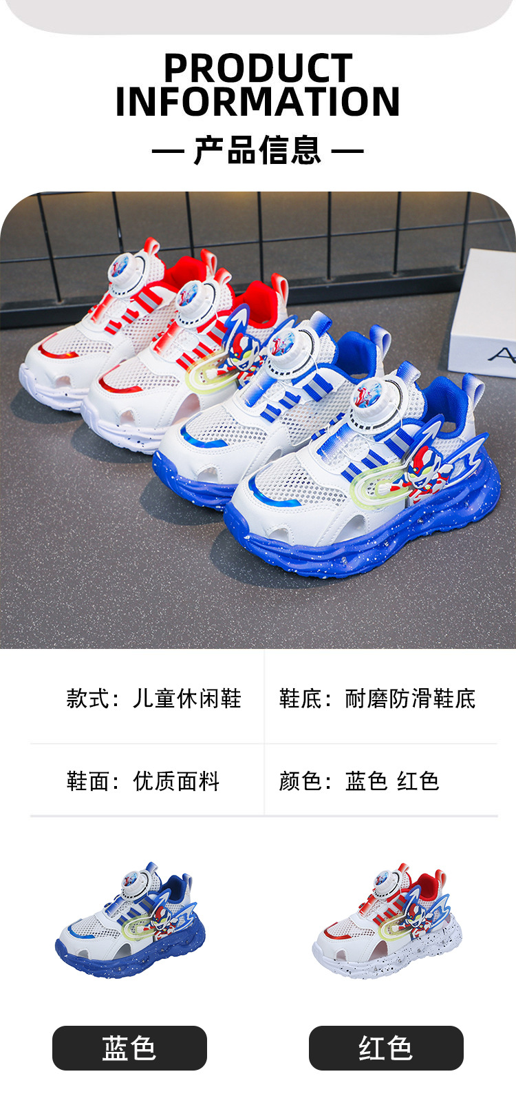 조명이 있는 아동용 스포츠 샌들 2025 여름 중소형 어린이용 버튼 스파이더맨 앞코가 뚫린 통기성 경량 남아용 샌들스토어 가기