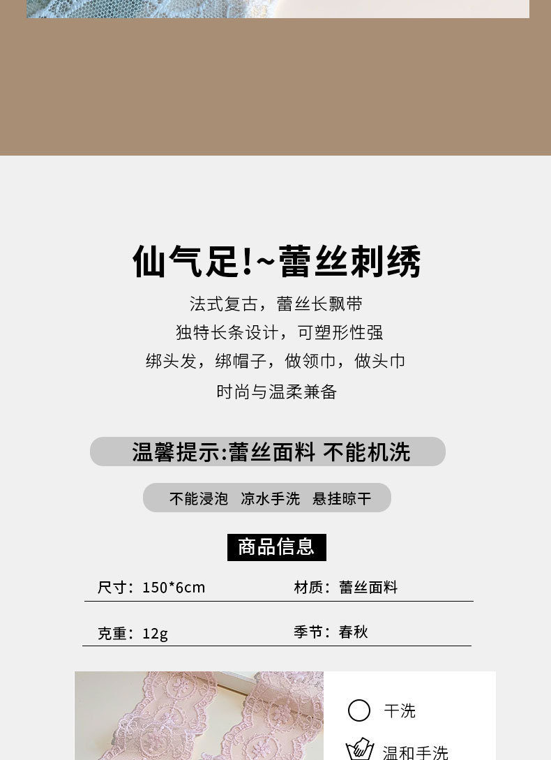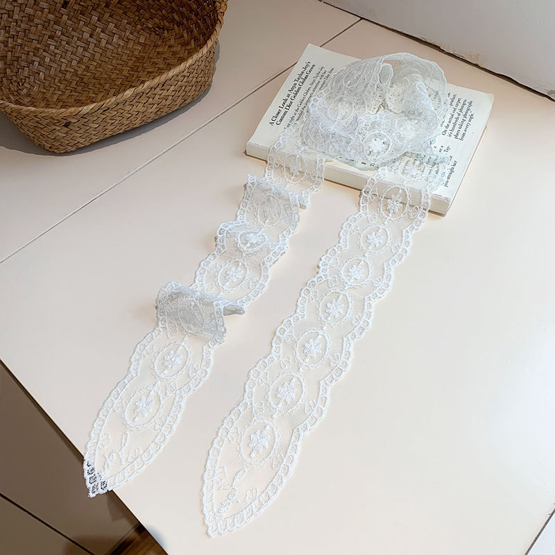 2025 틈새 디자인 슈퍼 요정 이탈리아 뾰족한 레이스 실크 스카프 헤어 벨트 여성의 봄과 여름 긴 스카프 넥타이 헤어 리본