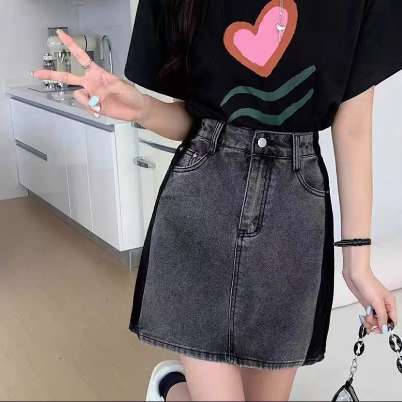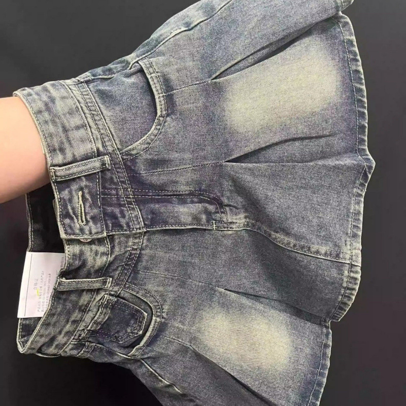 미국 복고풍 데님 스커트 여자 여름 2025 새로운 높은 허리 슬리밍 안티 눈부심 A 라인 하프 길이 스커트스토어 가기