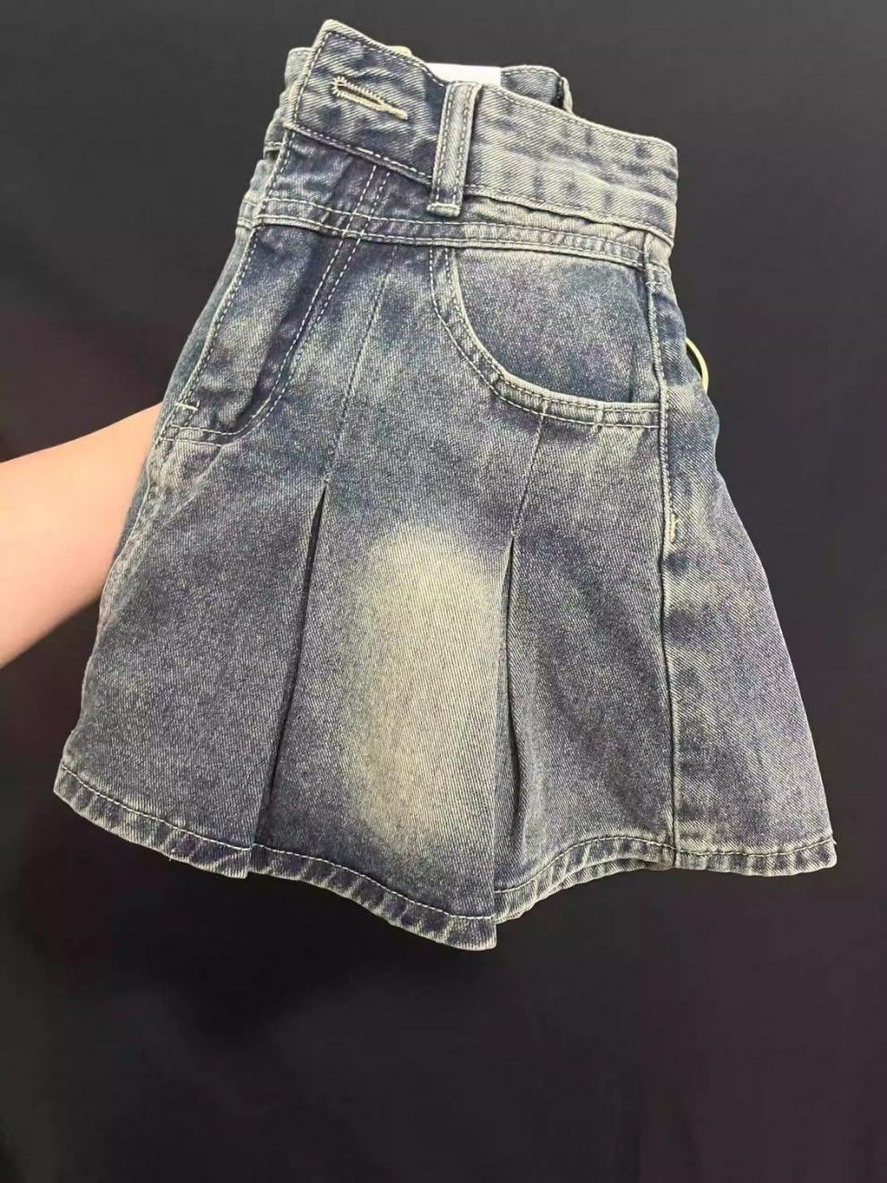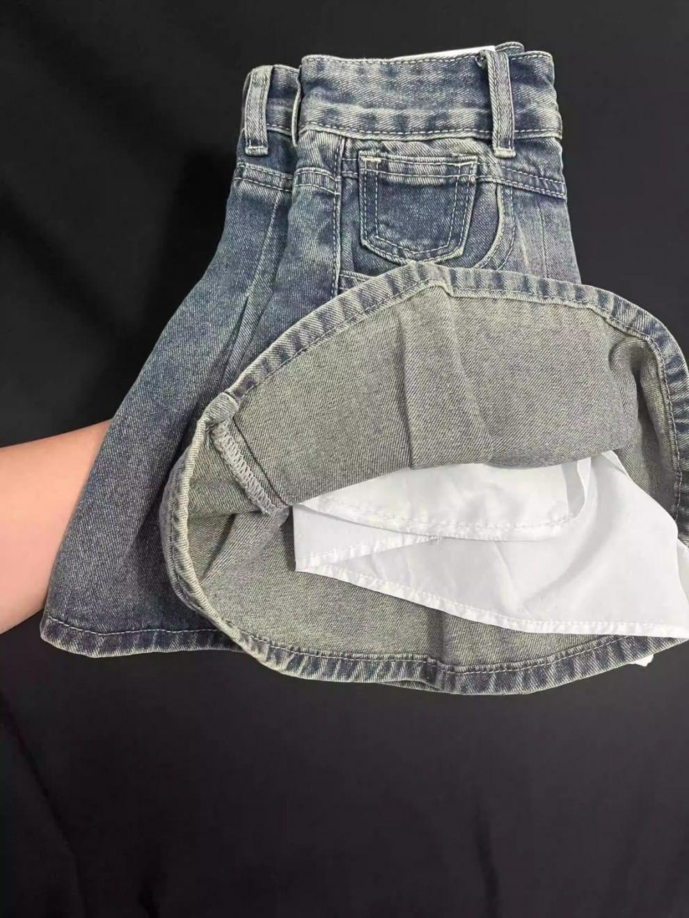 미국 복고풍 데님 스커트 여자 여름 2025 새로운 높은 허리 슬리밍 안티 눈부심 A 라인 하프 길이 스커트