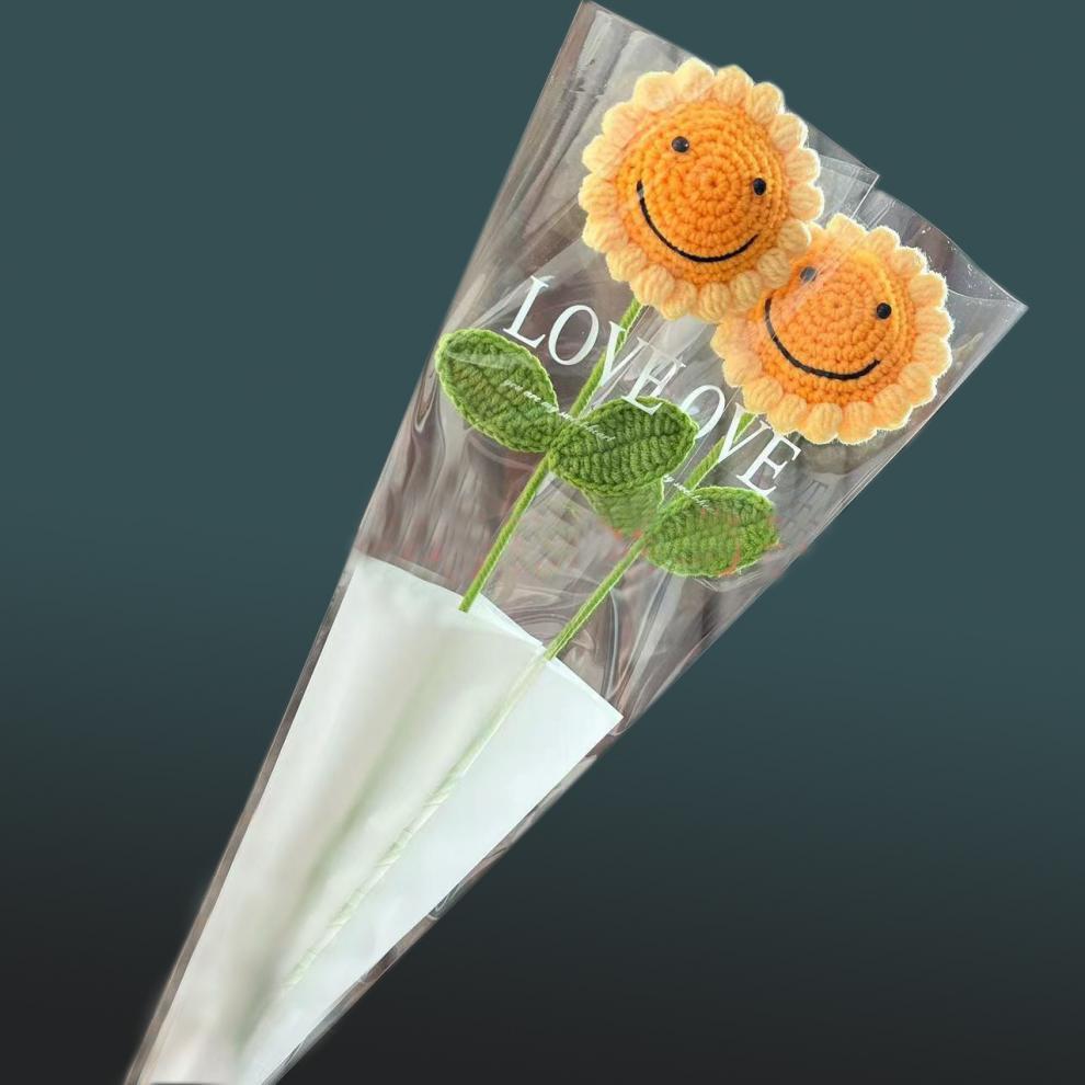 폭발 손으로 짠 니트 웃는 얼굴 해바라기 장미 울 꽃다발 시뮬레이션 꽃 완성 교사의 날스토어 가기