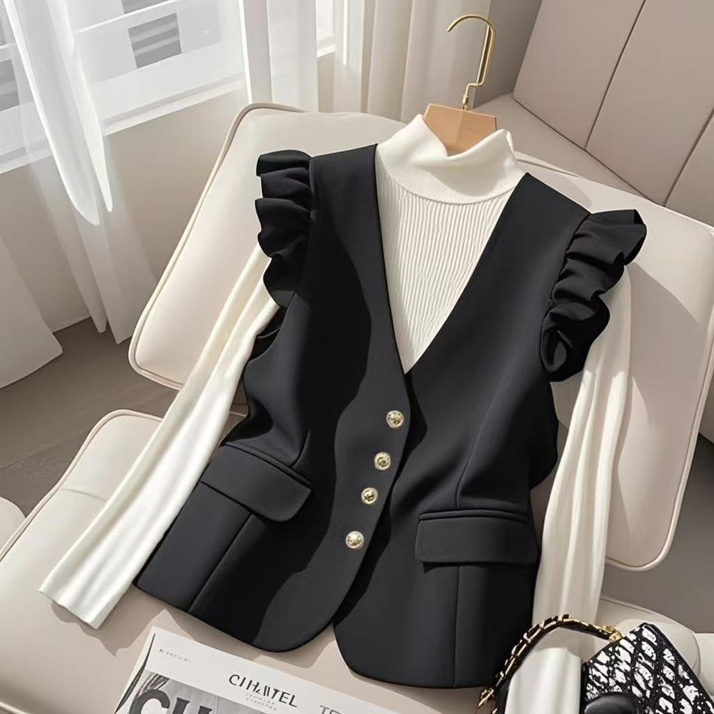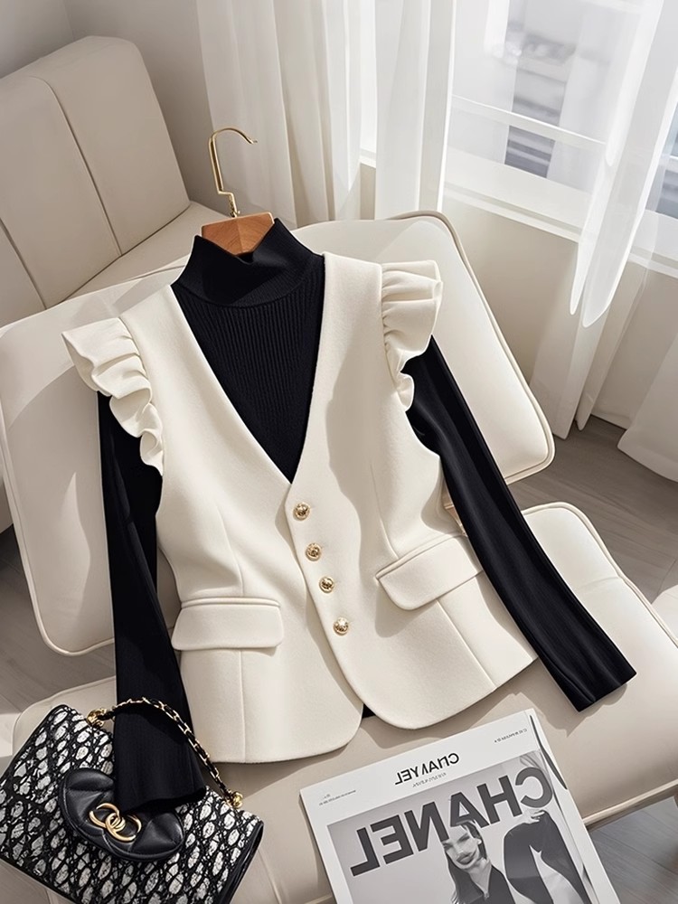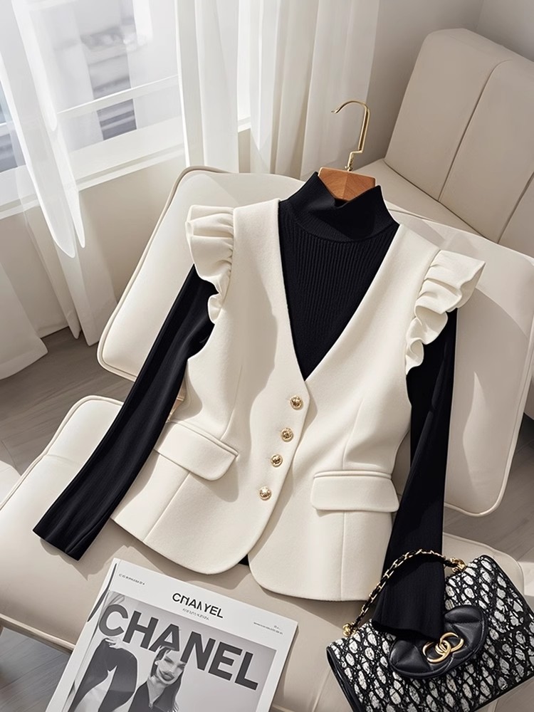 2025년 신상 겨울 여성용 크로스보더 조끼, 고급스럽고 멋스러운 레이어드룩, 샤넬풍 화이트 슈트 스타일 조끼스토어 가기