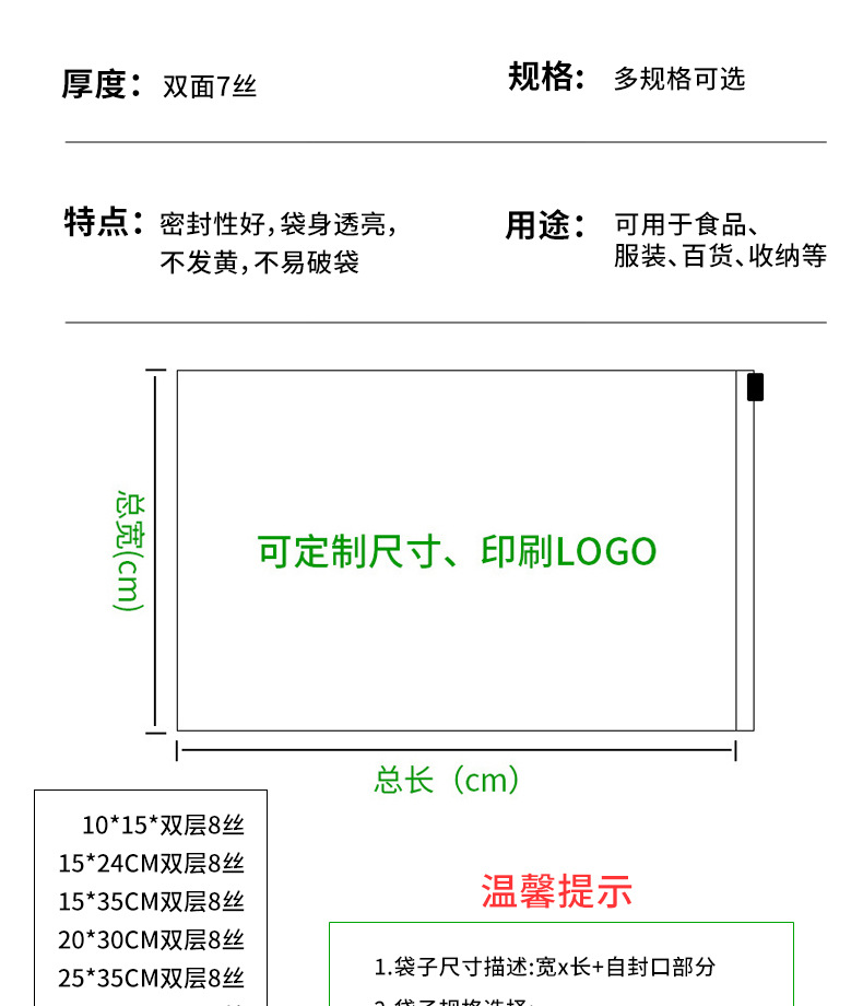 • 흰색; 평면 비닐 봉투 양면 7사 [친환경 마크 인쇄]; 7*15cm (200개/묶음)