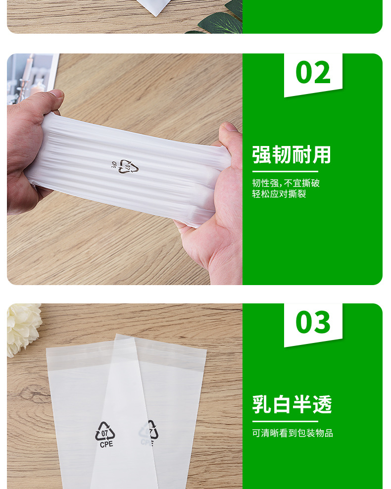 • 흰색; 양면 7 실크로 접착식 가방 [환경 보호 라벨이 인쇄됨]; 9*18+2cm(200개/팩)
