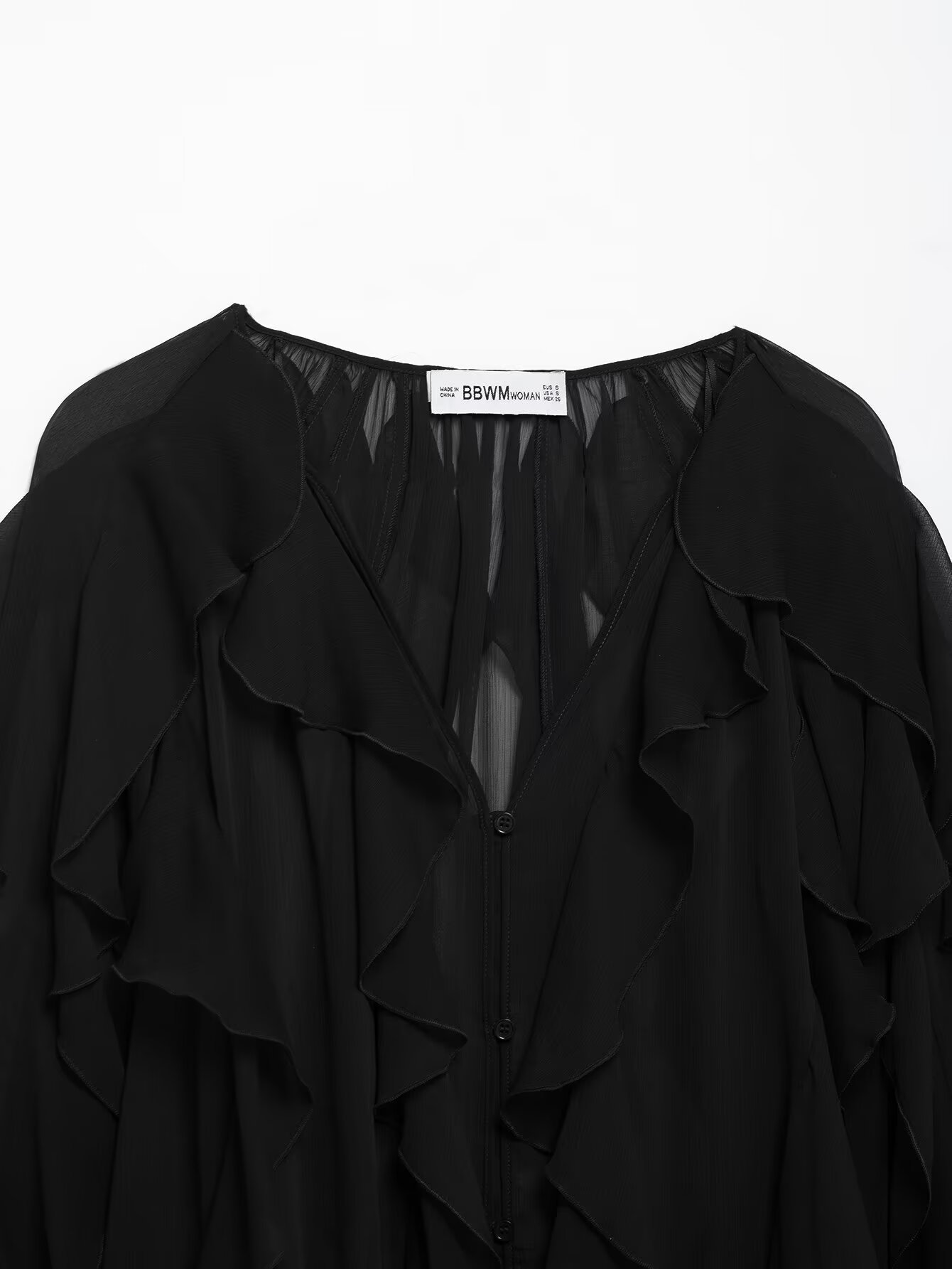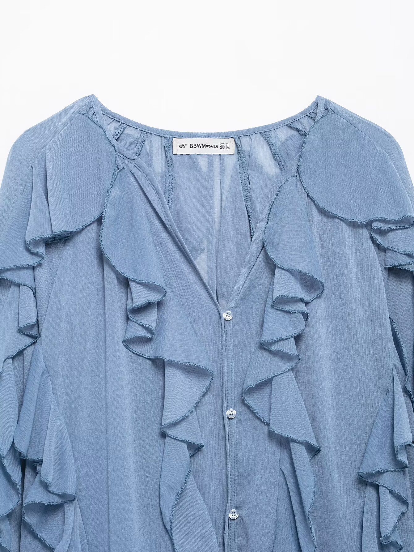 ZARZ 수제 유럽과 미국 스타일 새로운 여성 클래식 패션 올 매치 장식 셔츠 4786063스토어 가기