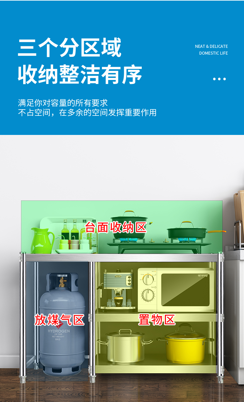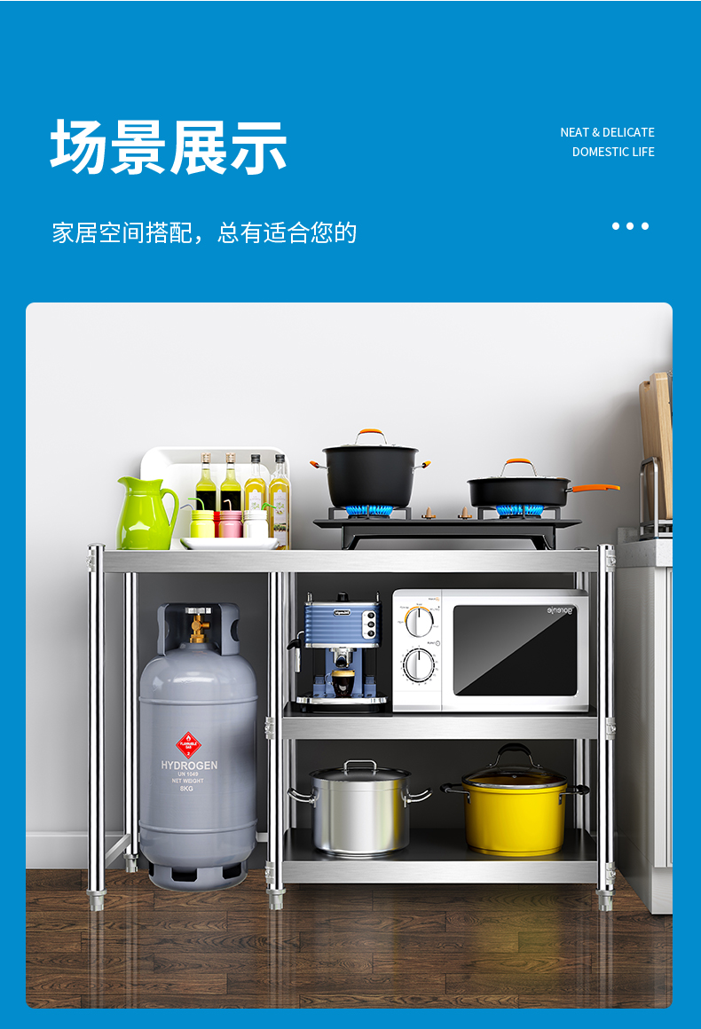N5 가스 선반 바닥 형 주방 캐비닛 저장 랙 스테인레스 스틸 스토리지 캐비닛 카운터 탑 스토리지 사이드 보드 제품
