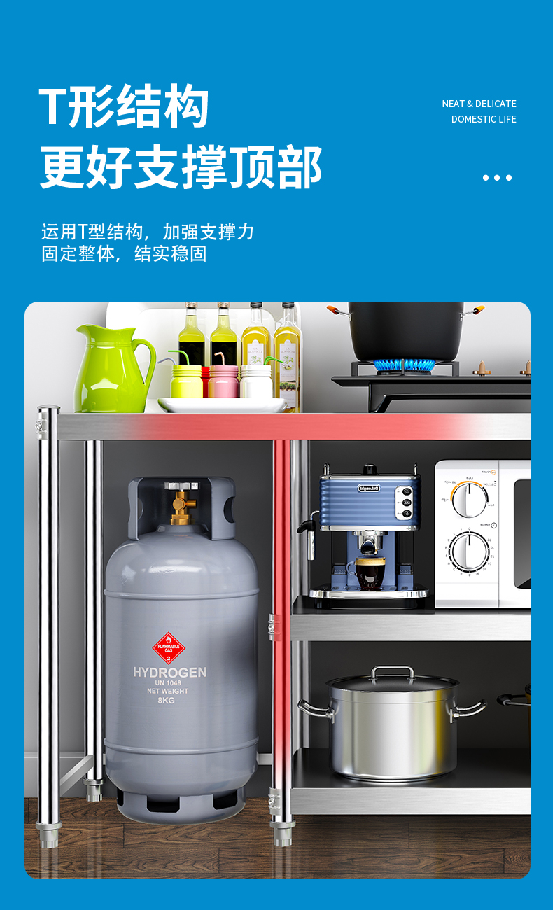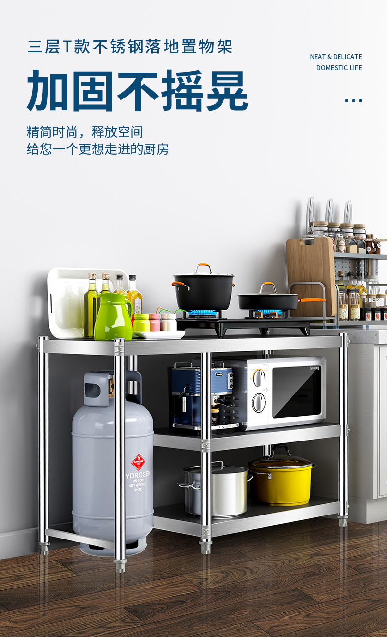 N5 가스 선반 바닥 형 주방 캐비닛 저장 랙 스테인레스 스틸 스토리지 캐비닛 카운터 탑 스토리지 사이드 보드 제품스토어 가기