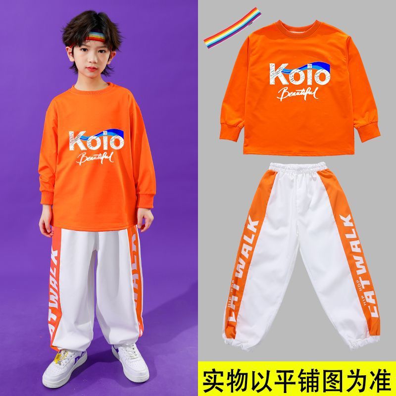 • 남성용 KO 오렌지색 스웨트셔츠 + 오렌지색 줄무늬 흰색 바지 + 무지개 머리띠