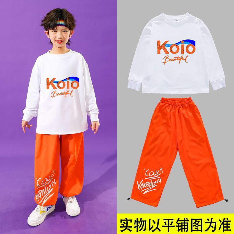 • 남성용 KO 흰색 스웨트셔츠 + 오렌지색 CV 바지 + 무지개 머리띠