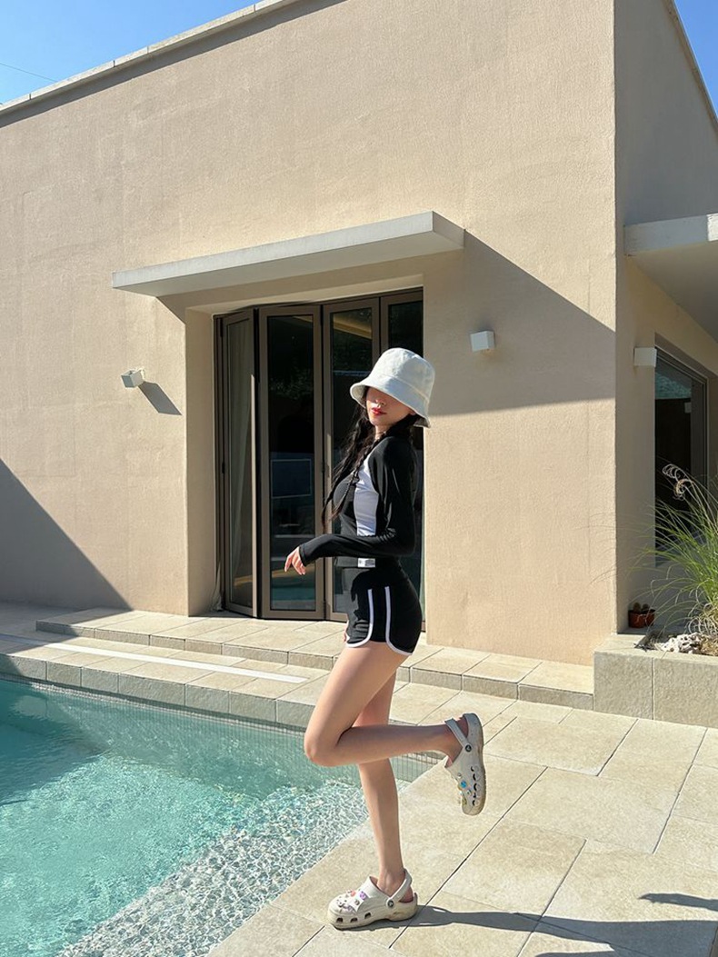 2025 년 여름 새로운 3 피스 수영복 여성 패셔너블 슬림 블랙 앤 화이트 컬러 블록 벨리 커버링 긴소매 보수 분할 수영복스토어 가기