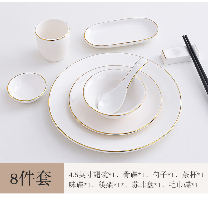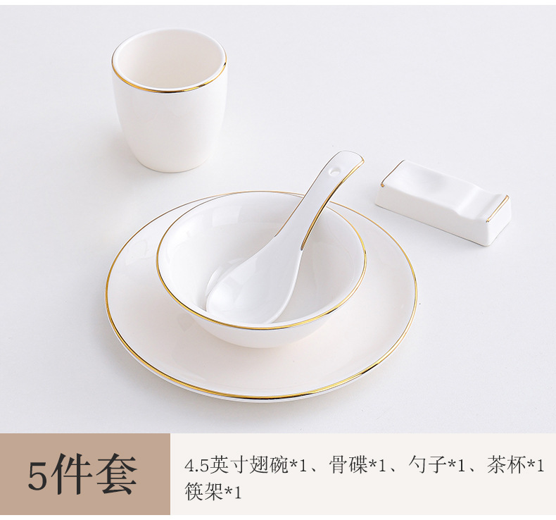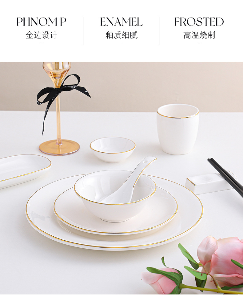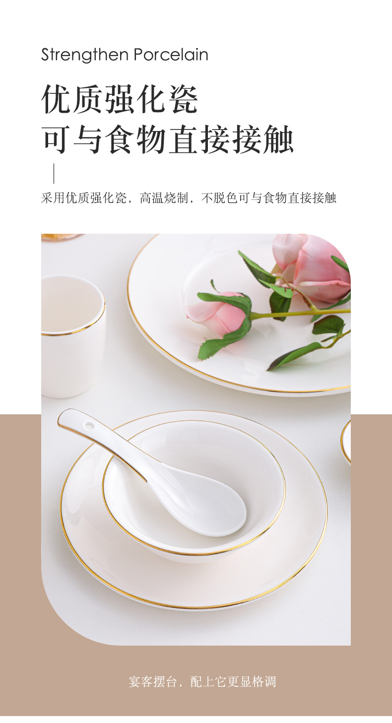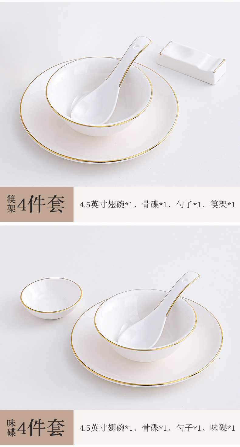 프놈펜 3 피스 호텔 레스토랑 식기류 뼈 접시 윙 보울 스푼 4 피스 세트 클럽 박스의 세라믹 테이블 세트스토어 가기