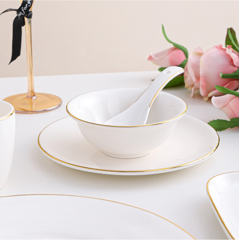 프놈펜 3 피스 호텔 레스토랑 식기류 뼈 접시 윙 보울 스푼 4 피스 세트 클럽 박스의 세라믹 테이블 세트