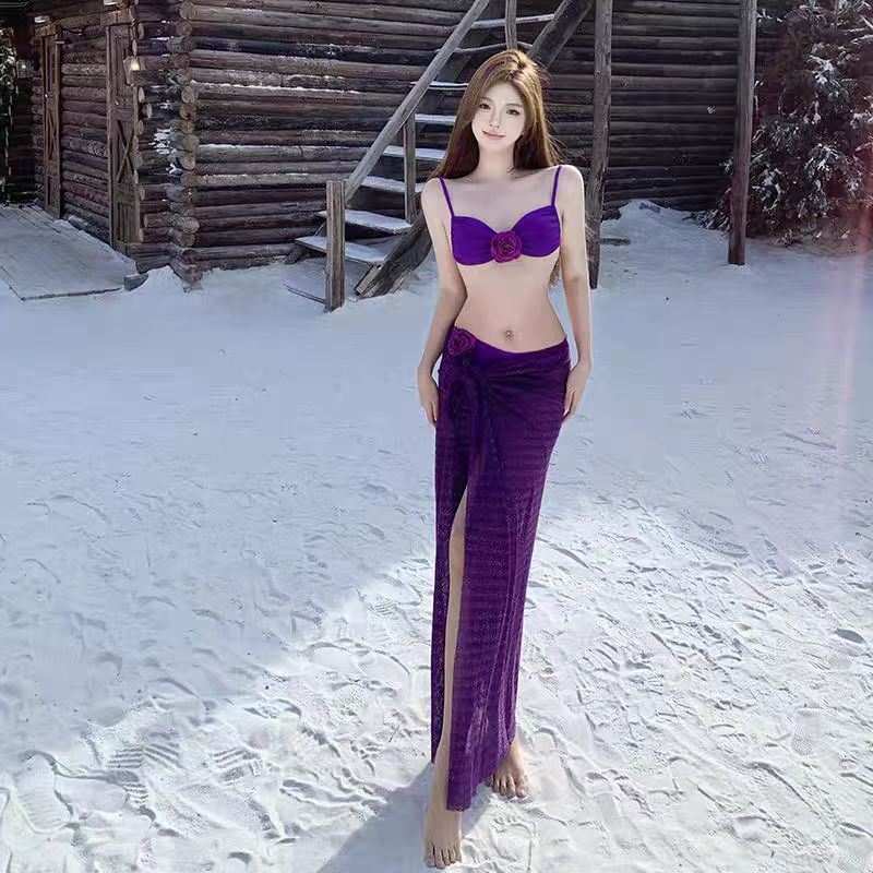 도매 여성 수영복 작은 가슴 튜브 탑 3 차원 꽃 메쉬 긴 스커트 스플릿 비키니 스파 휴일 수영복스토어 가기