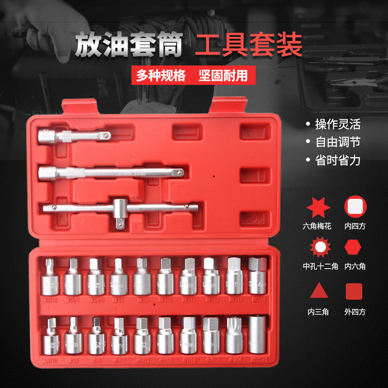 오일 바닥 드레인 스크류 렌치 오일 팬 스크류 슬리브 오일 교환 스크류 슬리브 박스 23 피스 세트