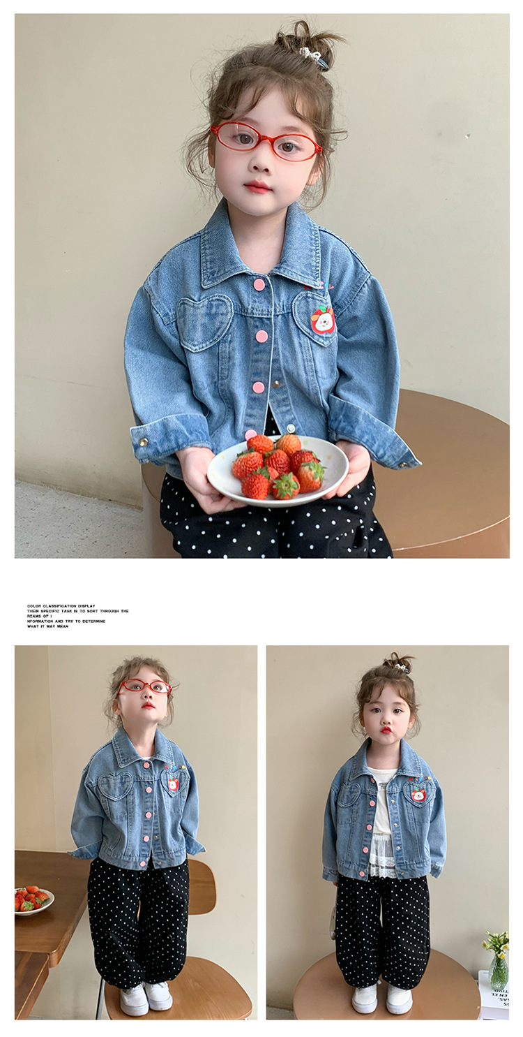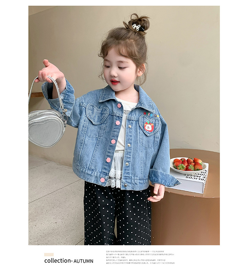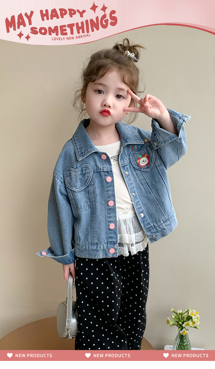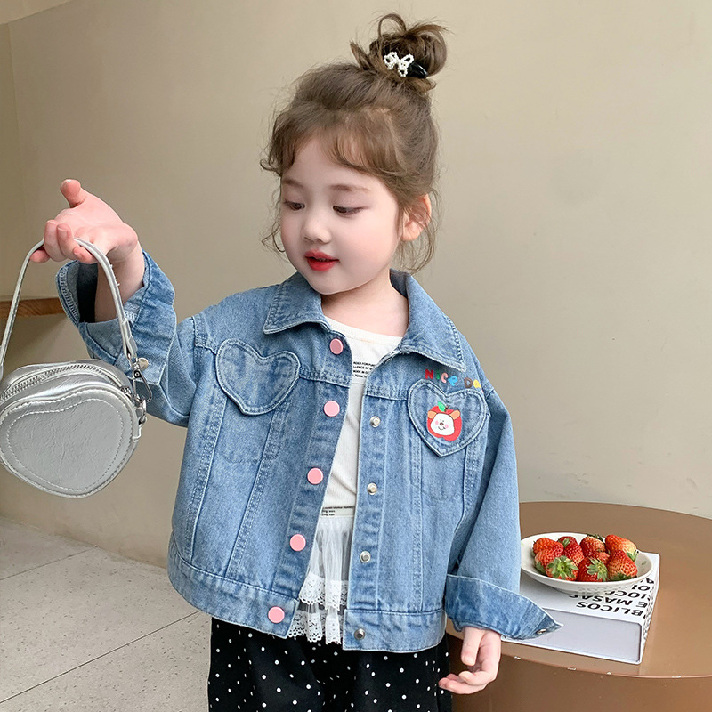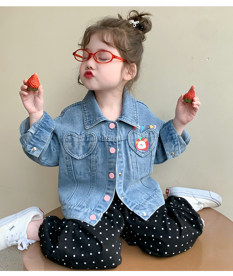 소녀 더블 러브 데님 코트 2025 새로운 패션 어린 소녀 세련된 탑 어린이 자켓스토어 가기
