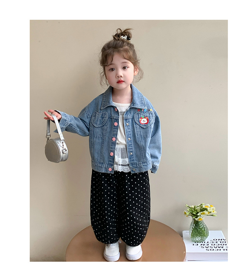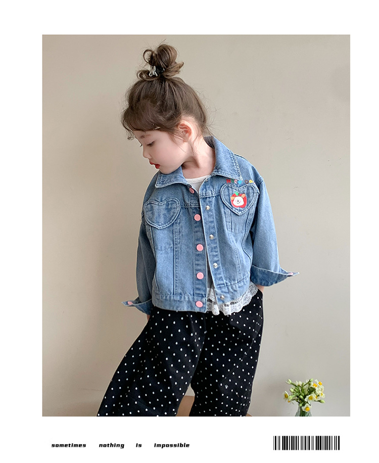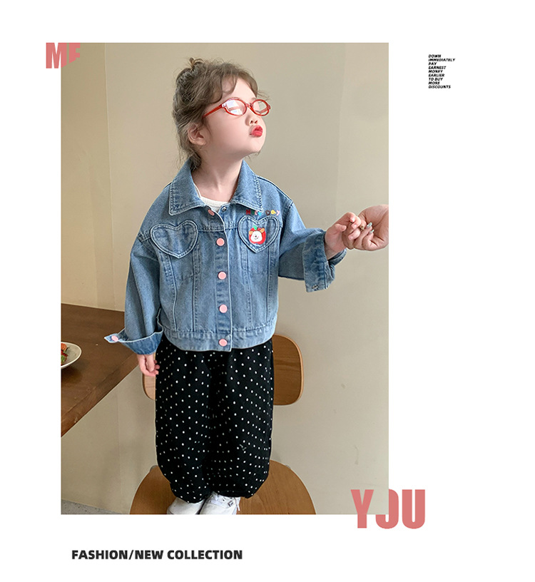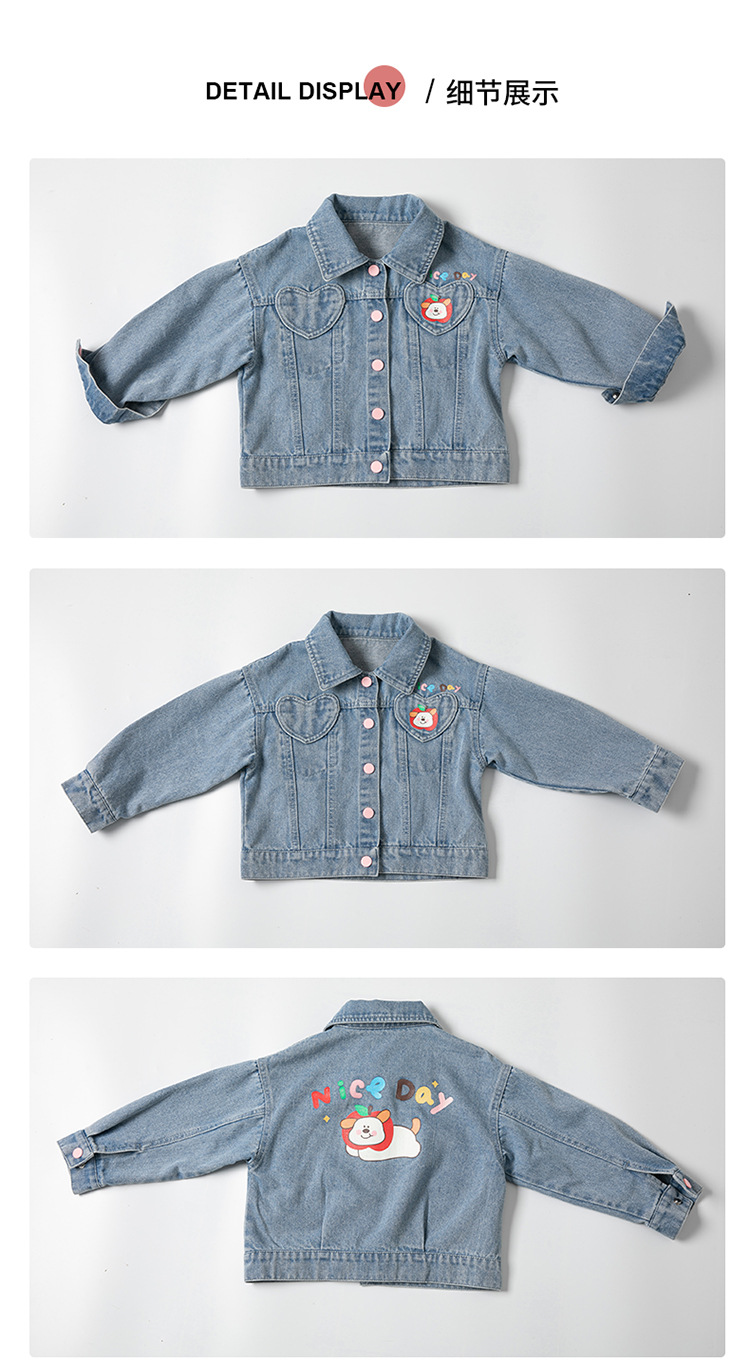 소녀 더블 러브 데님 코트 2025 새로운 패션 어린 소녀 세련된 탑 어린이 자켓스토어 가기