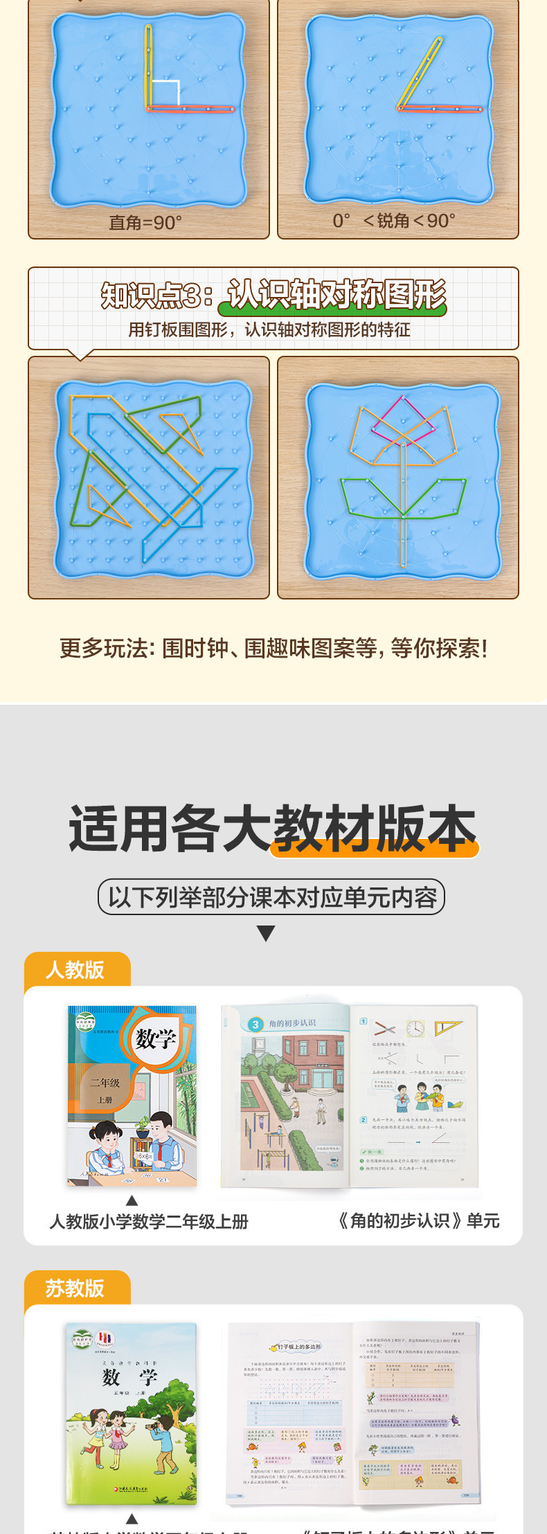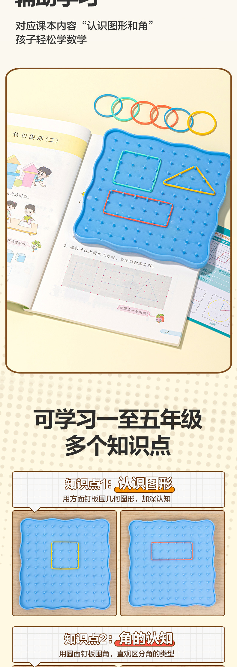 Deli YX472 초등학교 수학 네일 보드 기하학 교육 원조 1 학년 및 2 학년 학생을위한 네일 보드 다기능스토어 가기