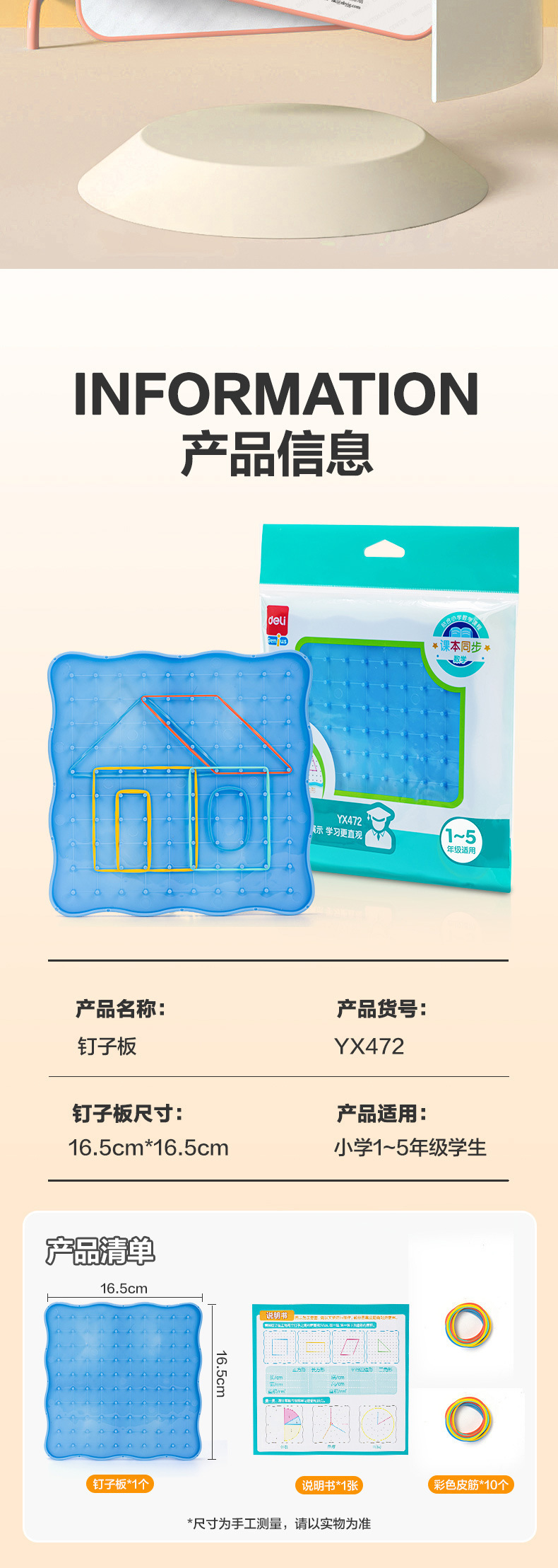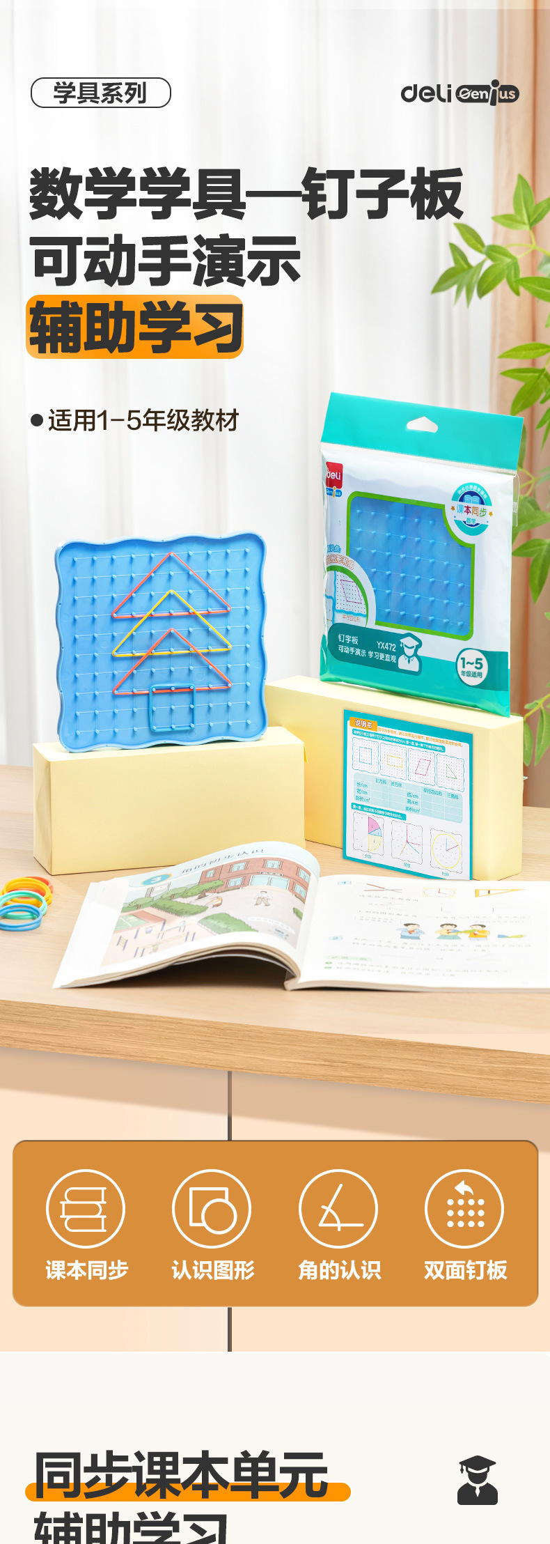 Deli YX472 초등학교 수학 네일 보드 기하학 교육 원조 1 학년 및 2 학년 학생을위한 네일 보드 다기능
