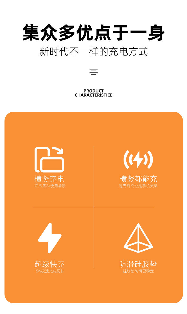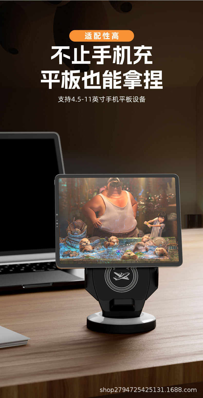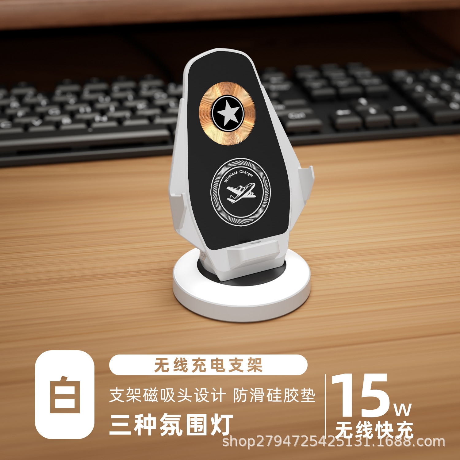 15W 데스크탑 수직 무선 충전 휴대 전화 홀더 보편적 인 분위기 빛 게으른 빠른 충전 공장 재고 공급스토어 가기