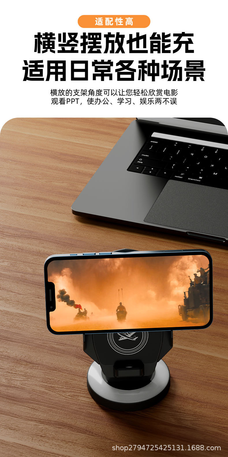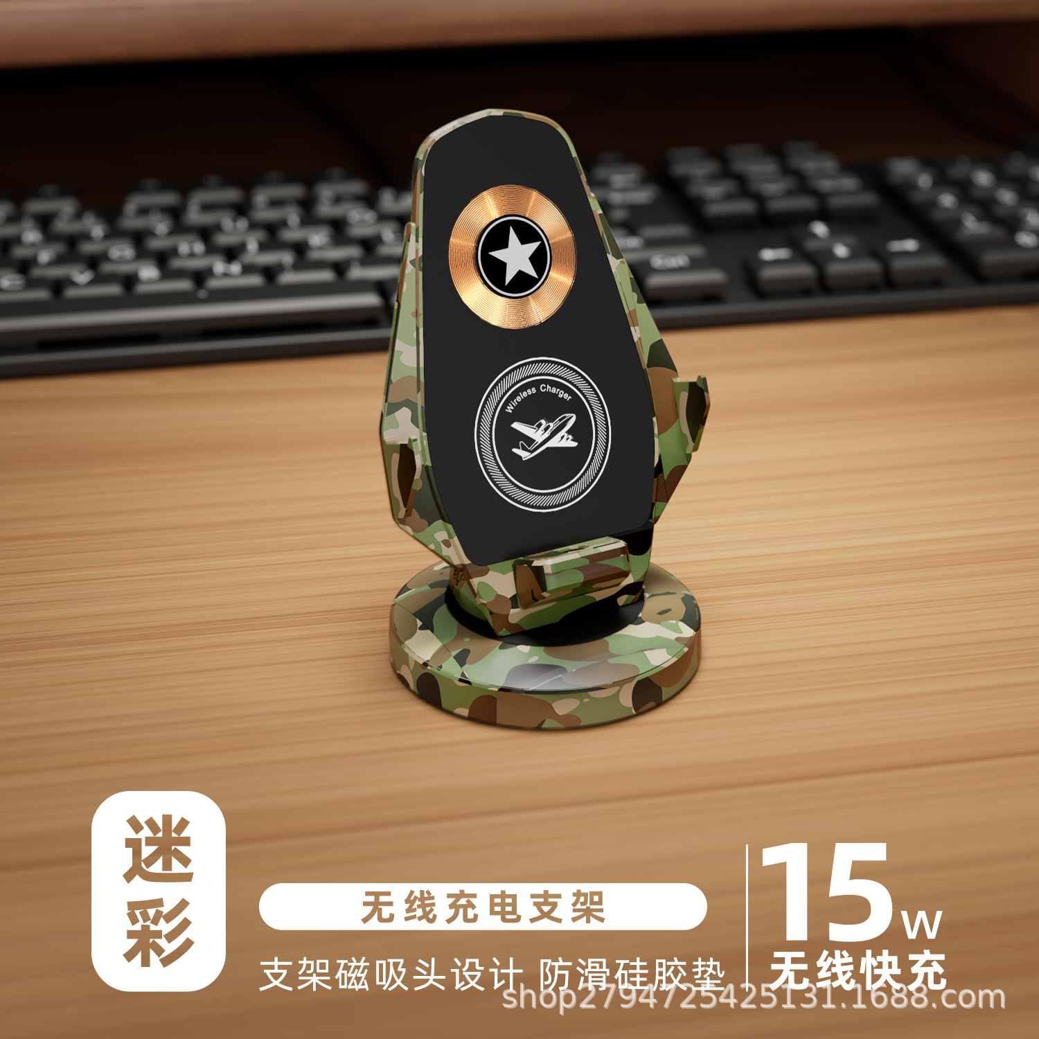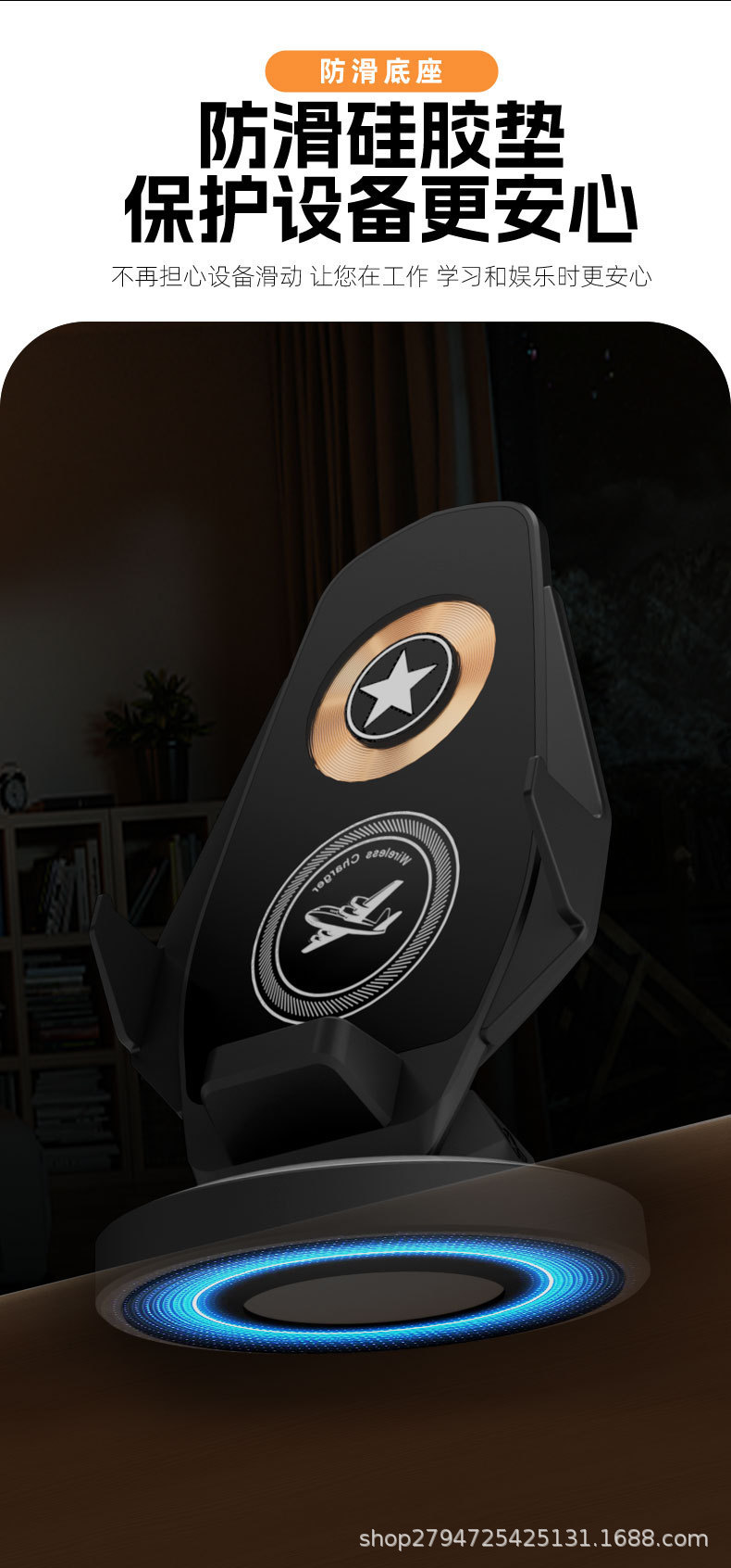 15W 데스크탑 수직 무선 충전 휴대 전화 홀더 보편적 인 분위기 빛 게으른 빠른 충전 공장 재고 공급스토어 가기