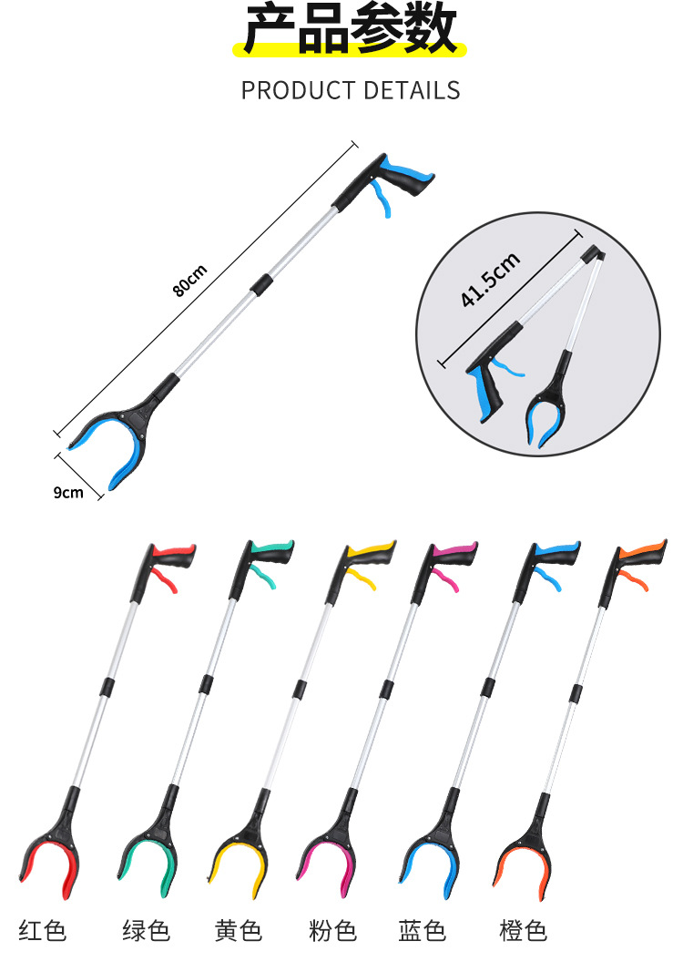 ✅국경 간 접이식 쓰레기 클립 두꺼운 알루미늄 합금 쓰레기 수거 위생 클립 컬렉션 클립 임산부는 물건을 집어 들기 위해 구부리지 않습니다