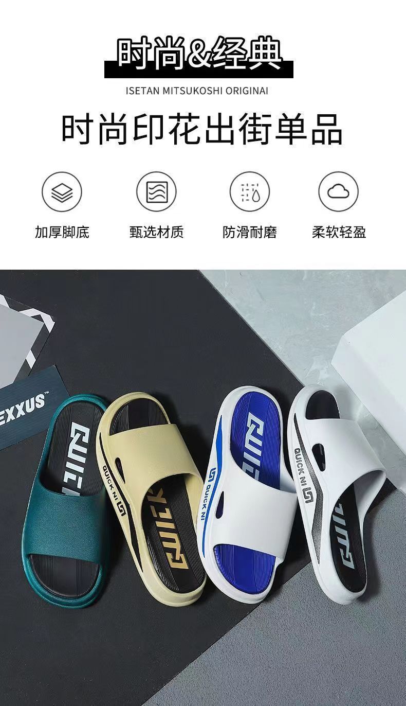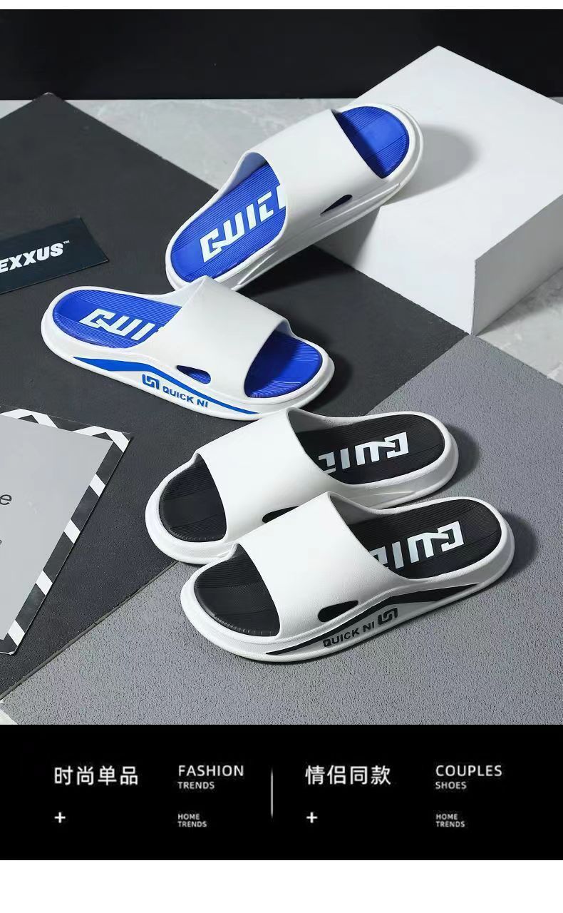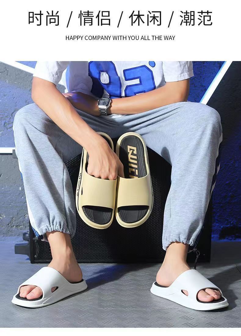 재고 슬립 온 슬리퍼 남성용 여름 외부 착용 유행 가정용 욕실 미끄럼 방지 유행 기숙사 커플스토어 가기