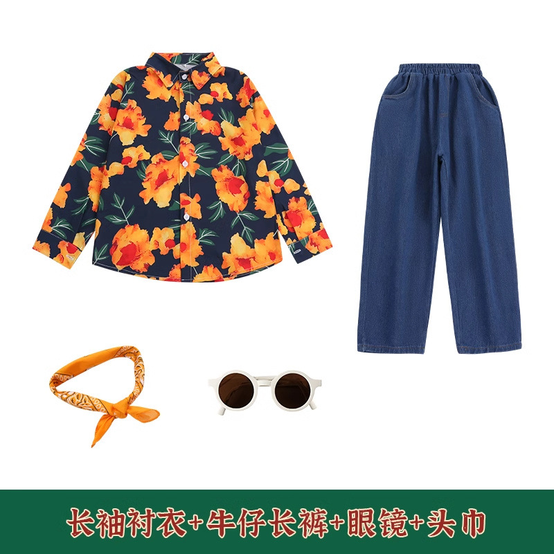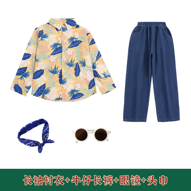 • 노란꽃긴팔+긴바지+[안경/노란색 머리스카프]