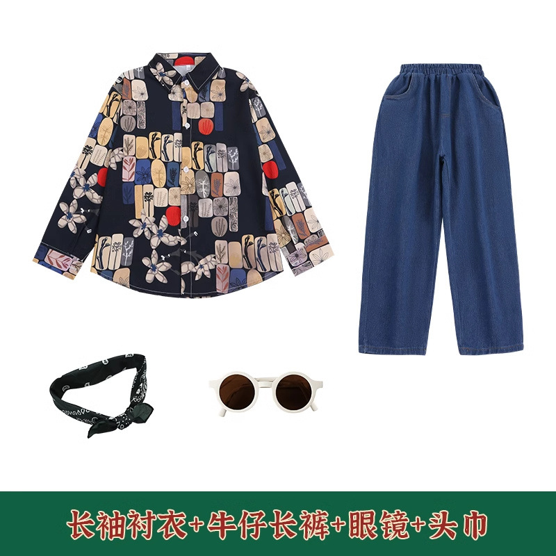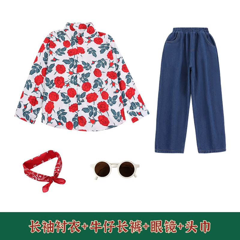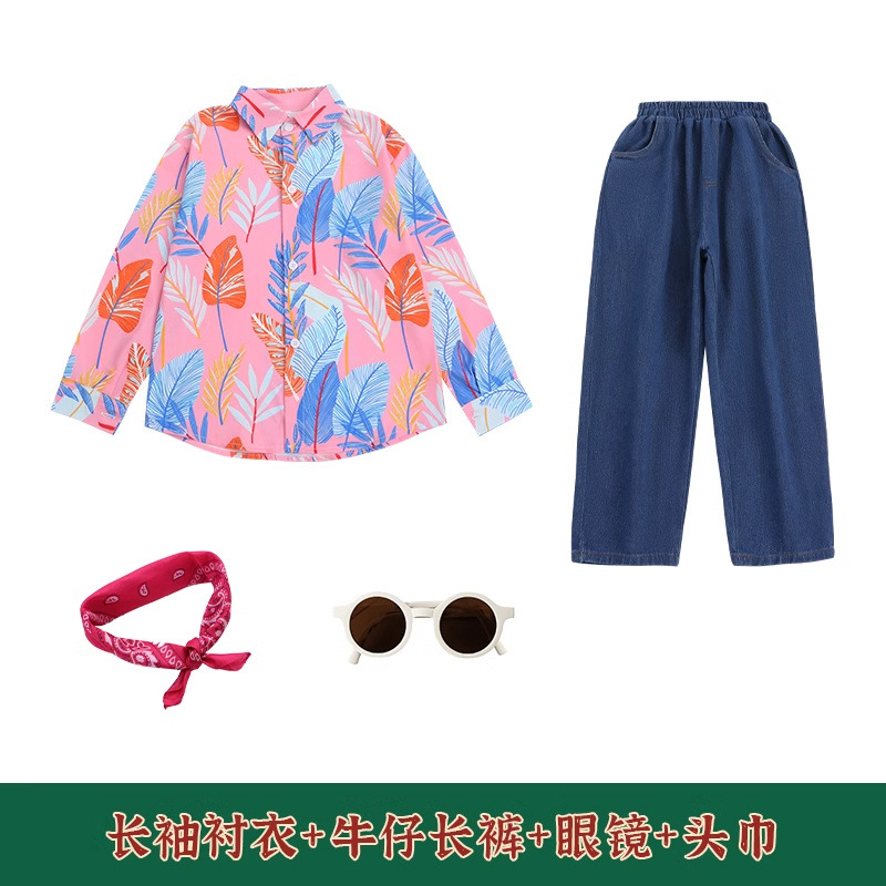 • 로즈긴팔+바지+[안경/빨간색 머리스카프]