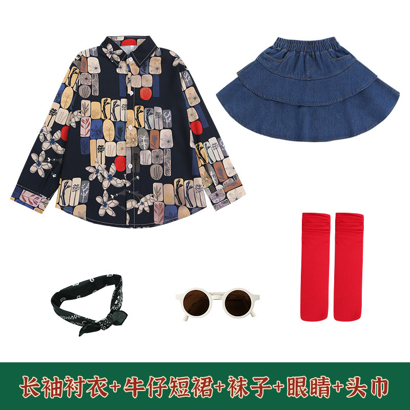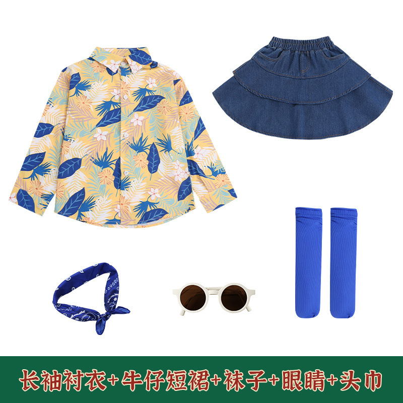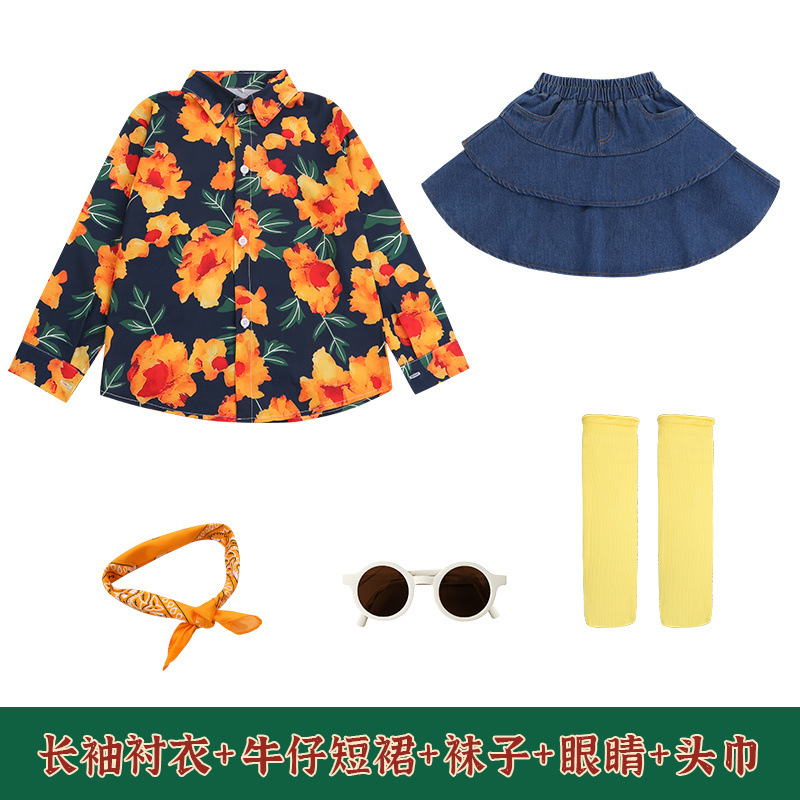 • 노란꽃긴팔+짧은치마+양말+[안경_노란머리스카프]