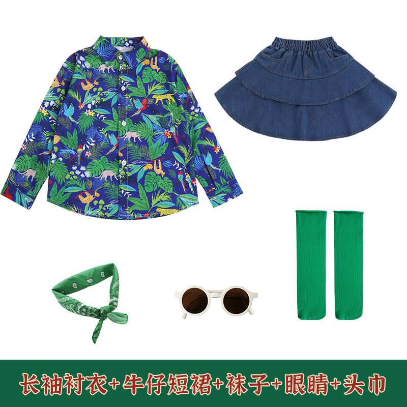 • 퍼즐긴팔+짧은치마+양말+[안경_짙은녹색 머리스카프]