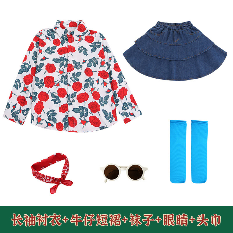 • 장미긴팔+짧은치마+양말+[안경_큰빨간스카프]