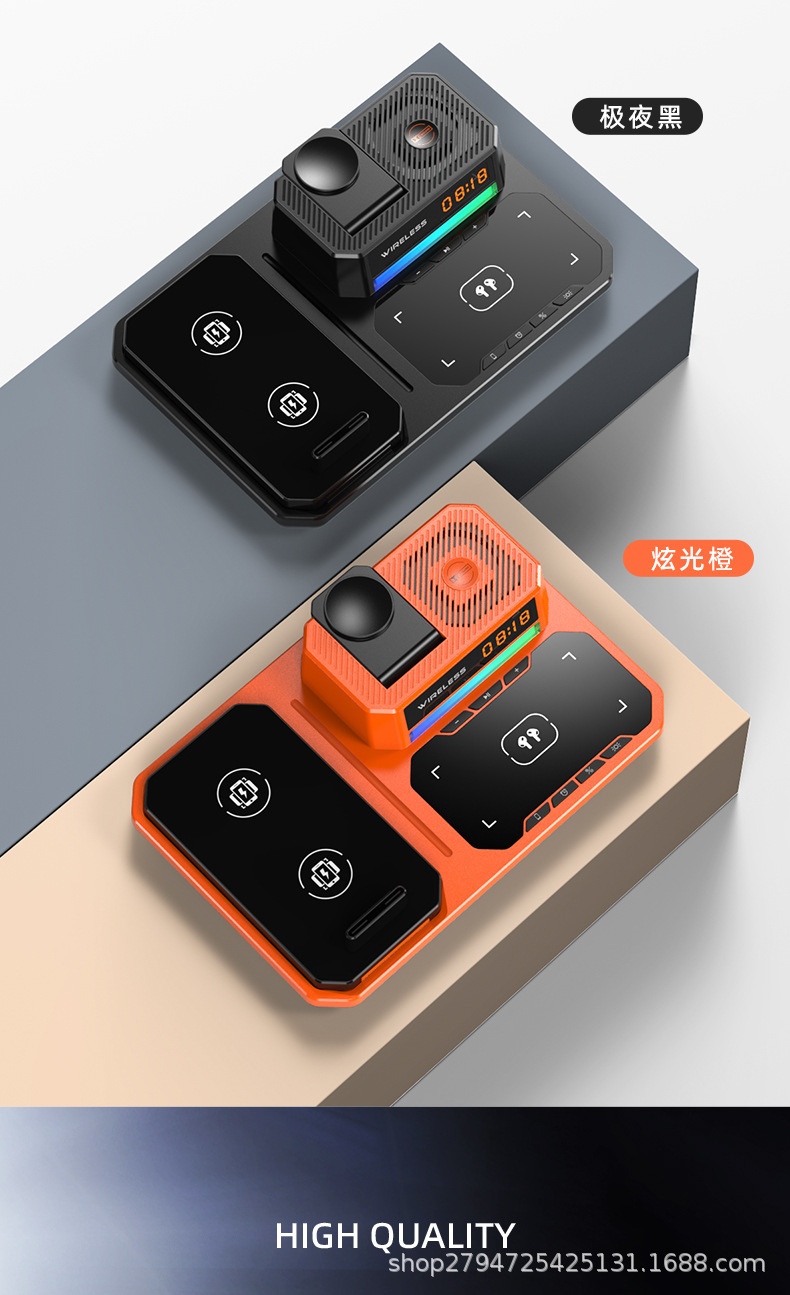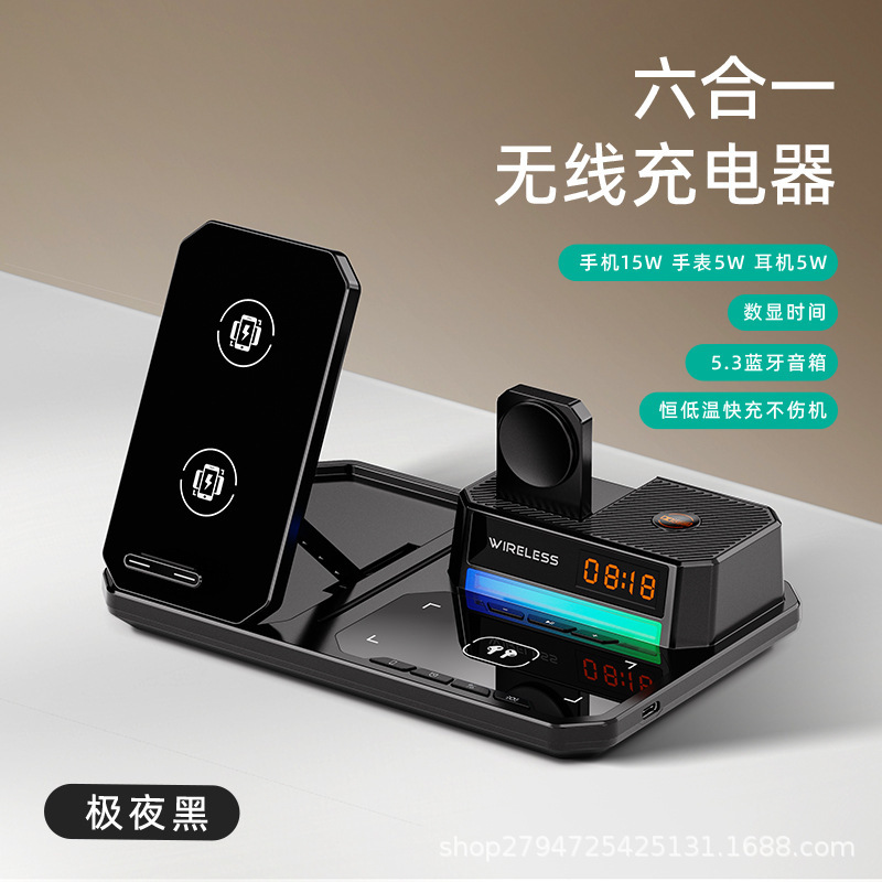 데스크탑 다기능 블루투스 스피커 시계 휴대 전화 접이식 스탠드 휴대용 4 대 1 무선 충전 재고 공급