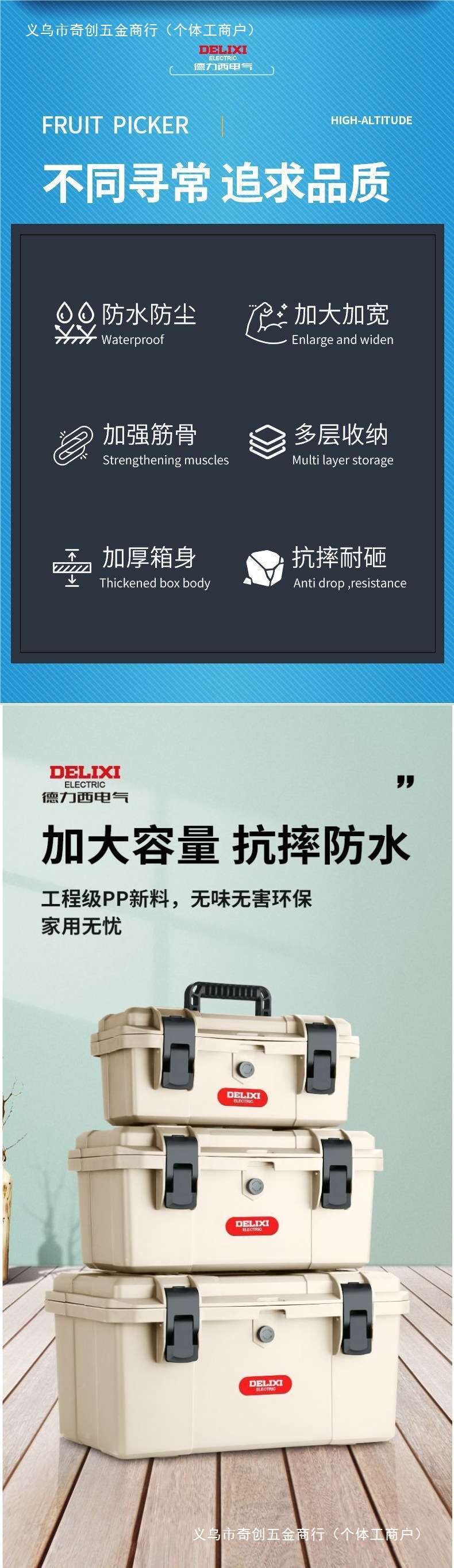 Delixi 하드웨어 도구 상자 방수 상자 가정용 산업 등급 다기능 전기 자동차 유지 보수 두꺼운 저장 상자스토어 가기