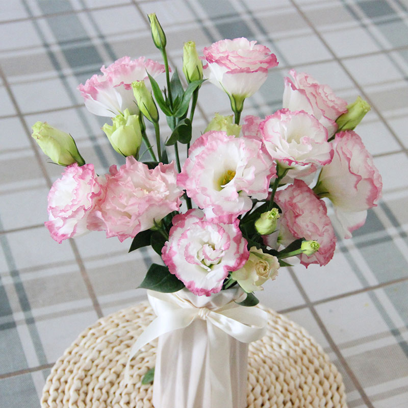 운남 꽃베이스 스트레이트 헤어 Eustoma grandiflorum 번들 꽃 가정 꽃 배열 물 모금 쿤밍 도매 직접 배치 우편 배달