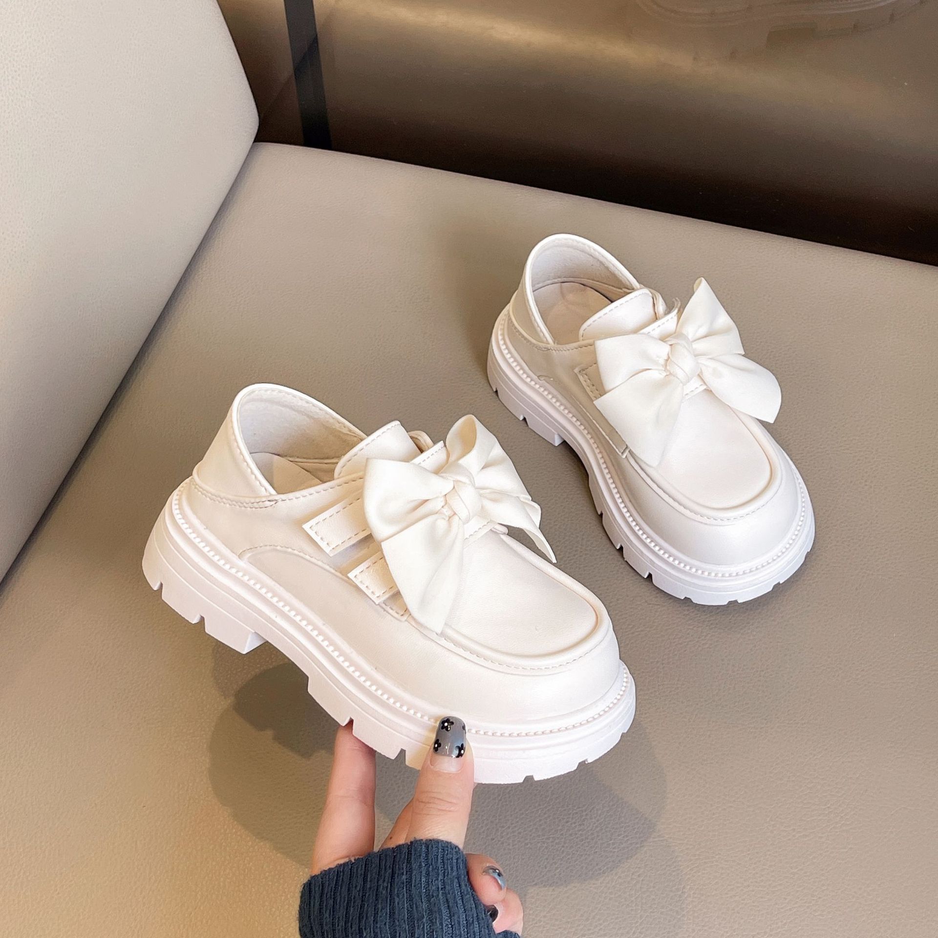 소녀 작은 가죽 신발 검은 영국 스타일 2025 봄과 가을 새로운 큰 머리 플랫폼 공주 신발 로퍼 어린이와 아기스토어 가기
