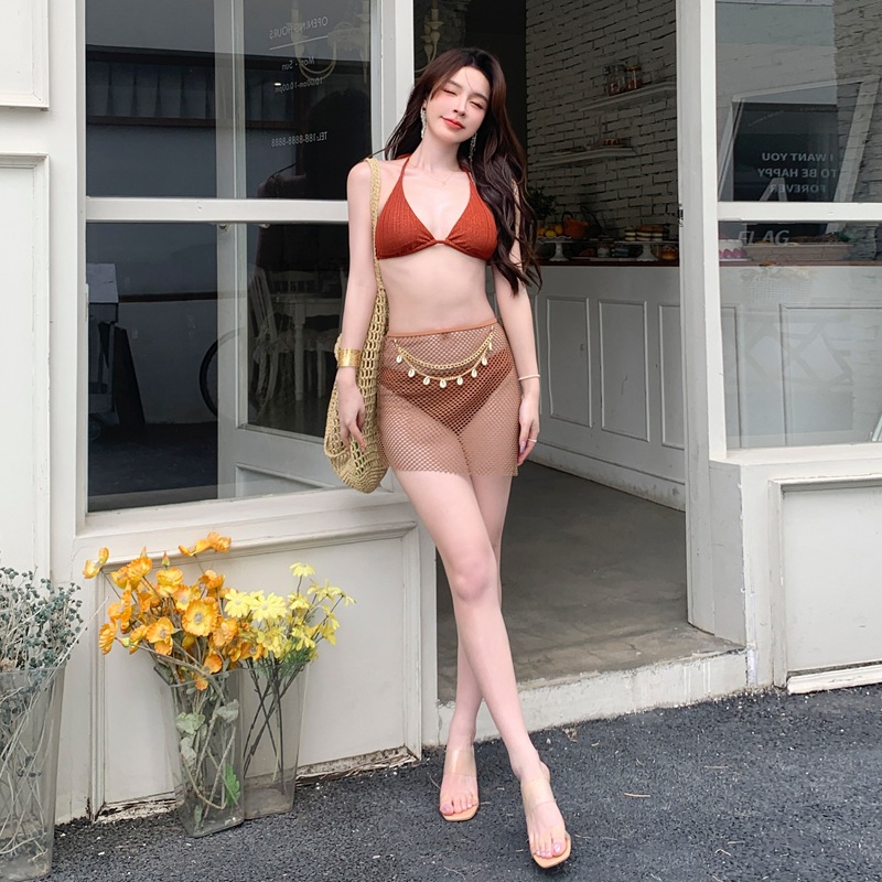 해변 휴가 비키니 스파이스 소녀 3 피스 수영복 여성 하이 스타일 레드 수영복 섹시한 온천스토어 가기
