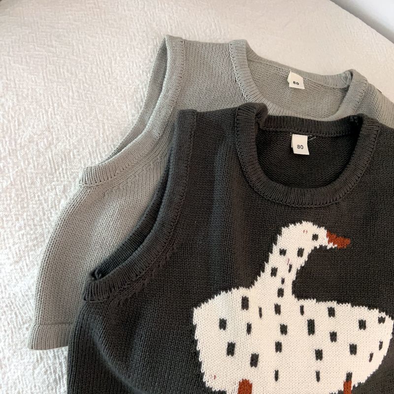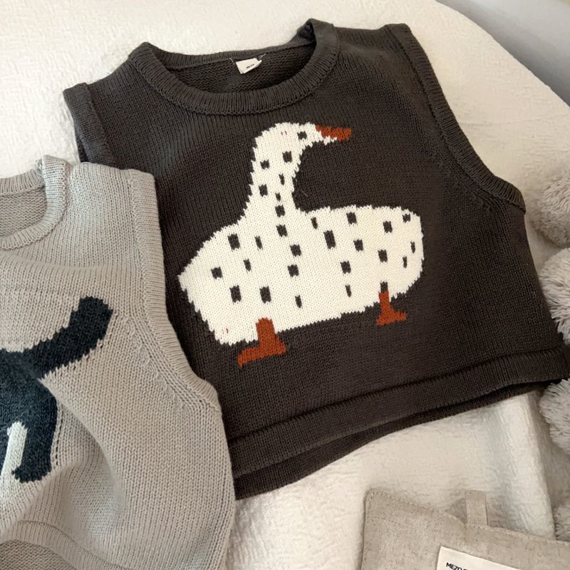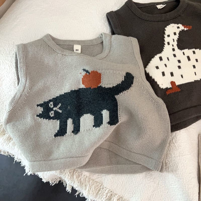 어린이 만화 자카드 니트 조끼 2025 봄과 가을 소년의 귀여운 둥근 목 스웨터 조끼 여자 민소매 조끼스토어 가기