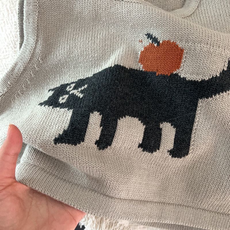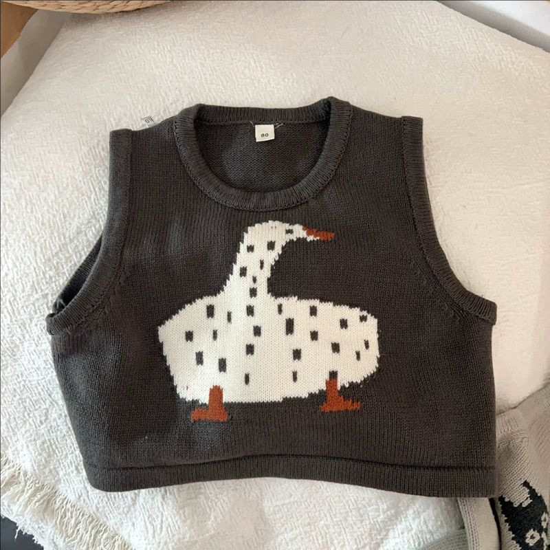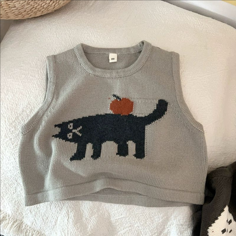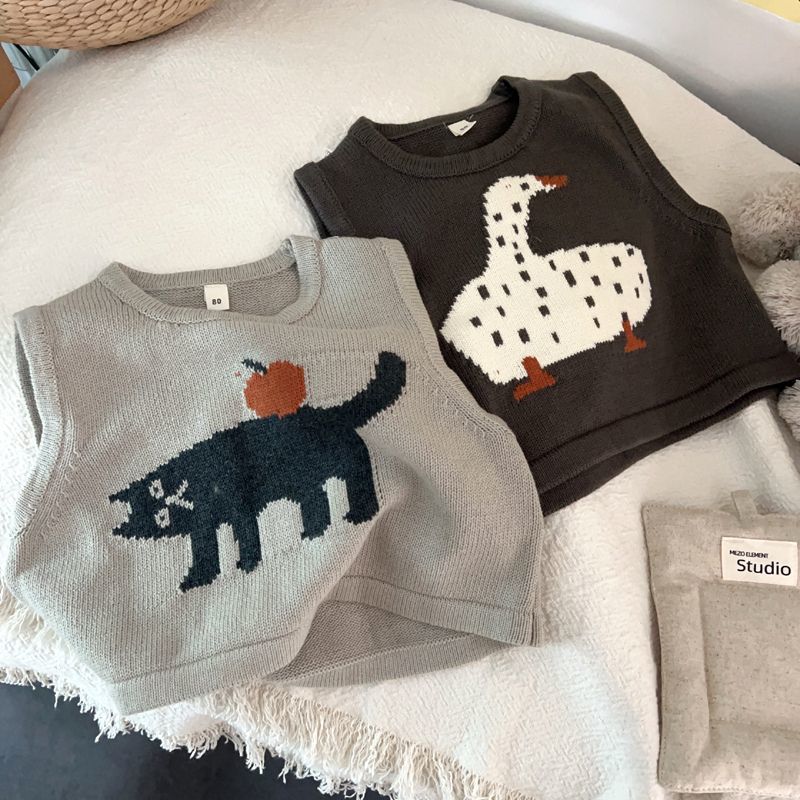 어린이 만화 자카드 니트 조끼 2025 봄과 가을 소년의 귀여운 둥근 목 스웨터 조끼 여자 민소매 조끼