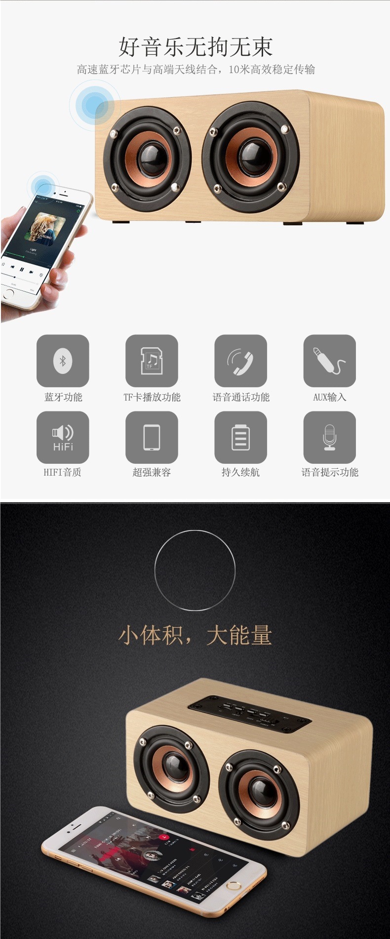• K5 듀얼 스피커 노란색 나뭇결 + 2000곡(16G TF 카드)