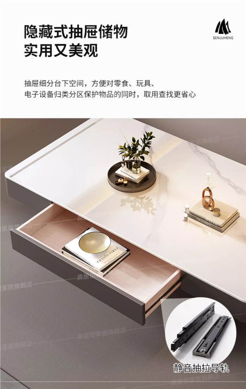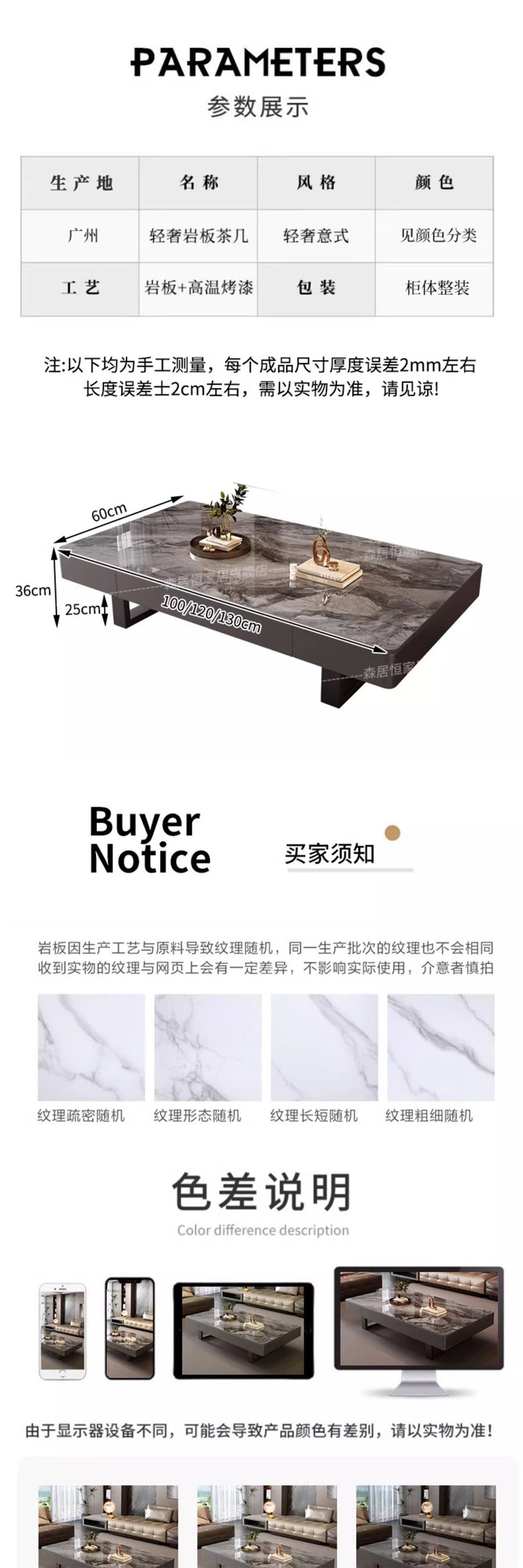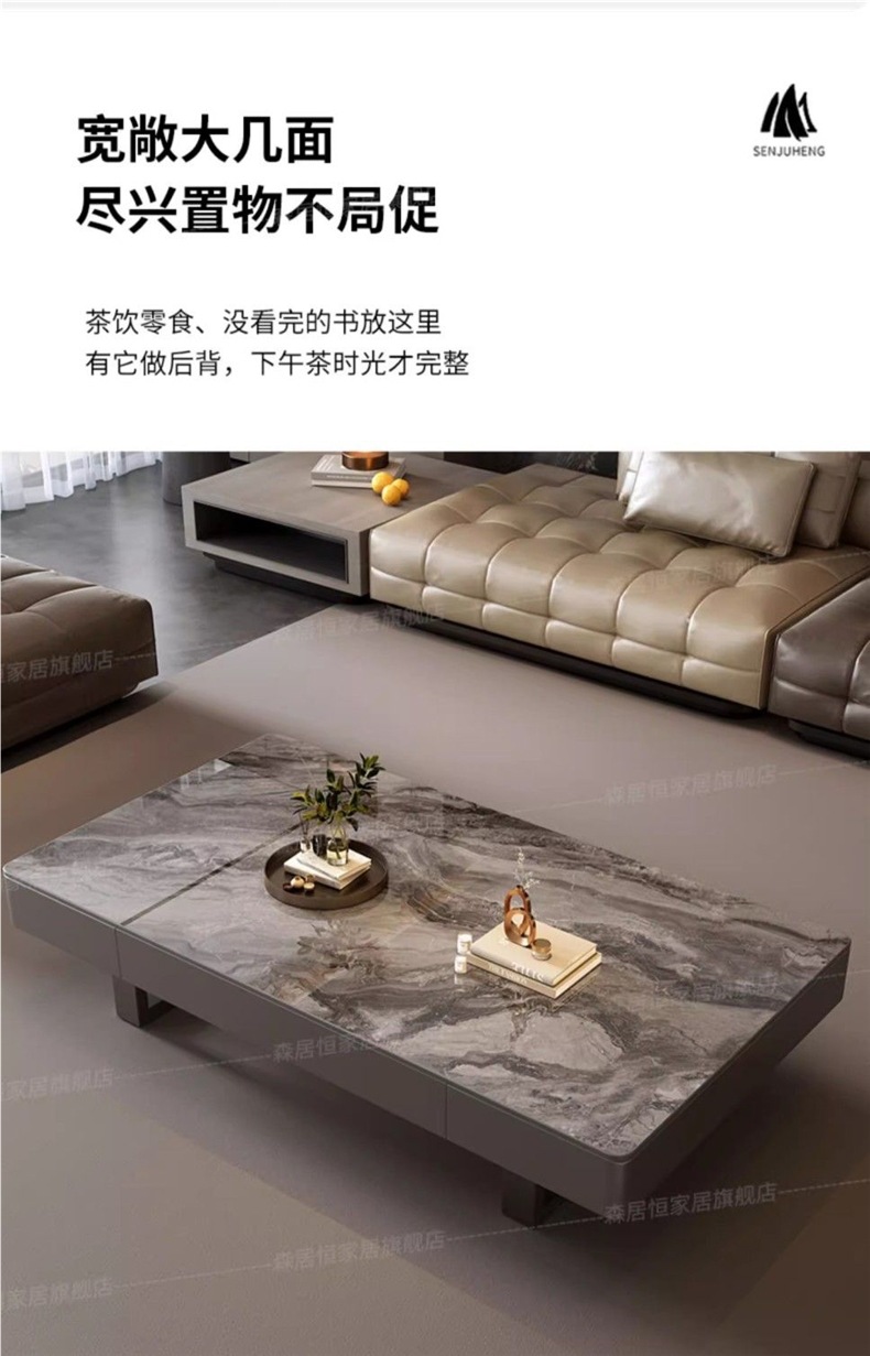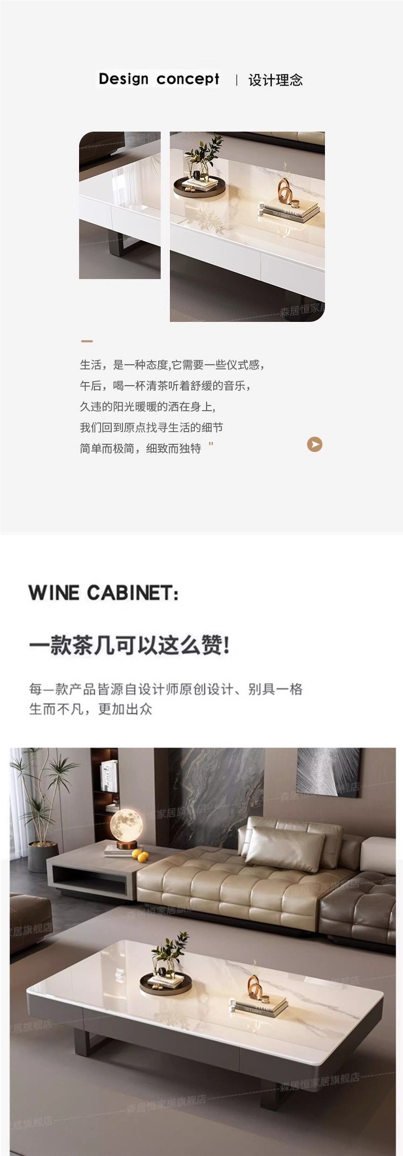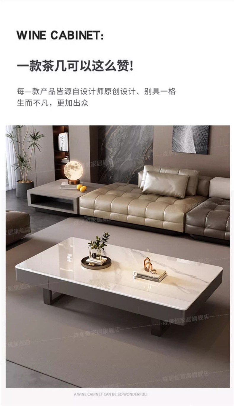 간 유한 현대 간단한 록 보드 이탈리아 스타일 빛 고급 간단한 거실 커피 테이블 홈 하이 엔드 작은 아파트 2024 새로운 스타일