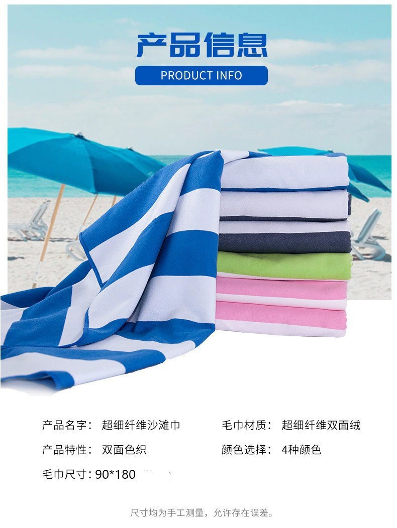 재고 마이크로 화이버 스트라이프 비치 타월 수영 비 스틱 모래 비치 타월 야외 경량 빠른 건조 목욕 타월